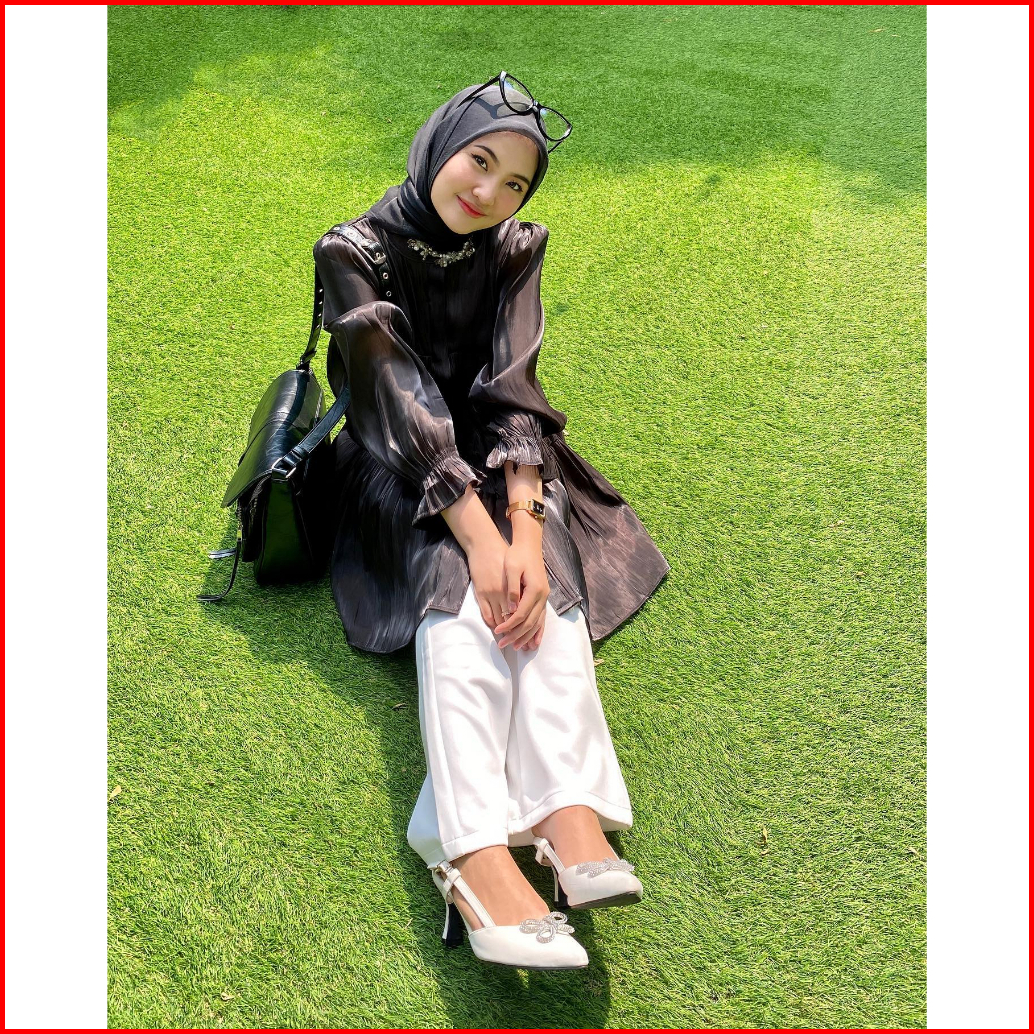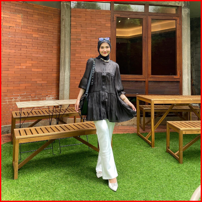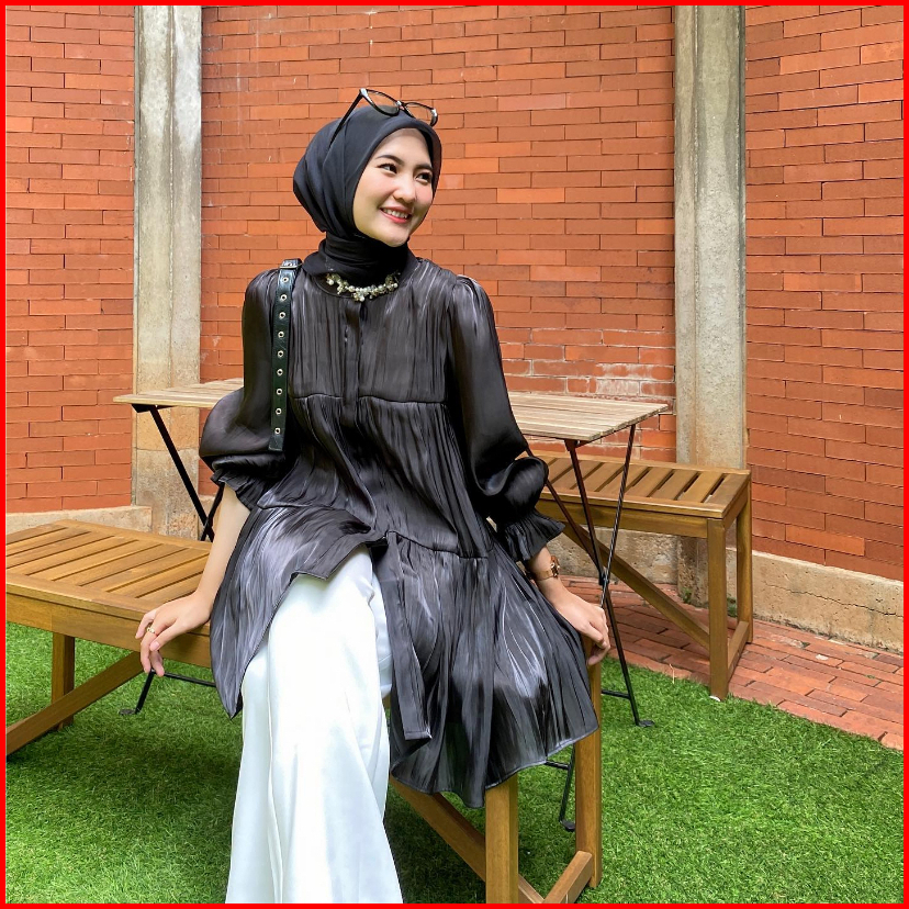 Kahlaa Tunik Shimmer Silk Premium Warna Black Atasan Kondangan Morocco Tunik