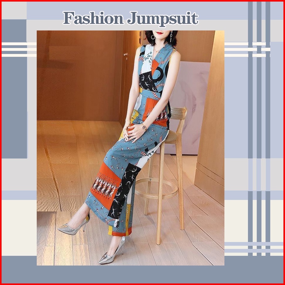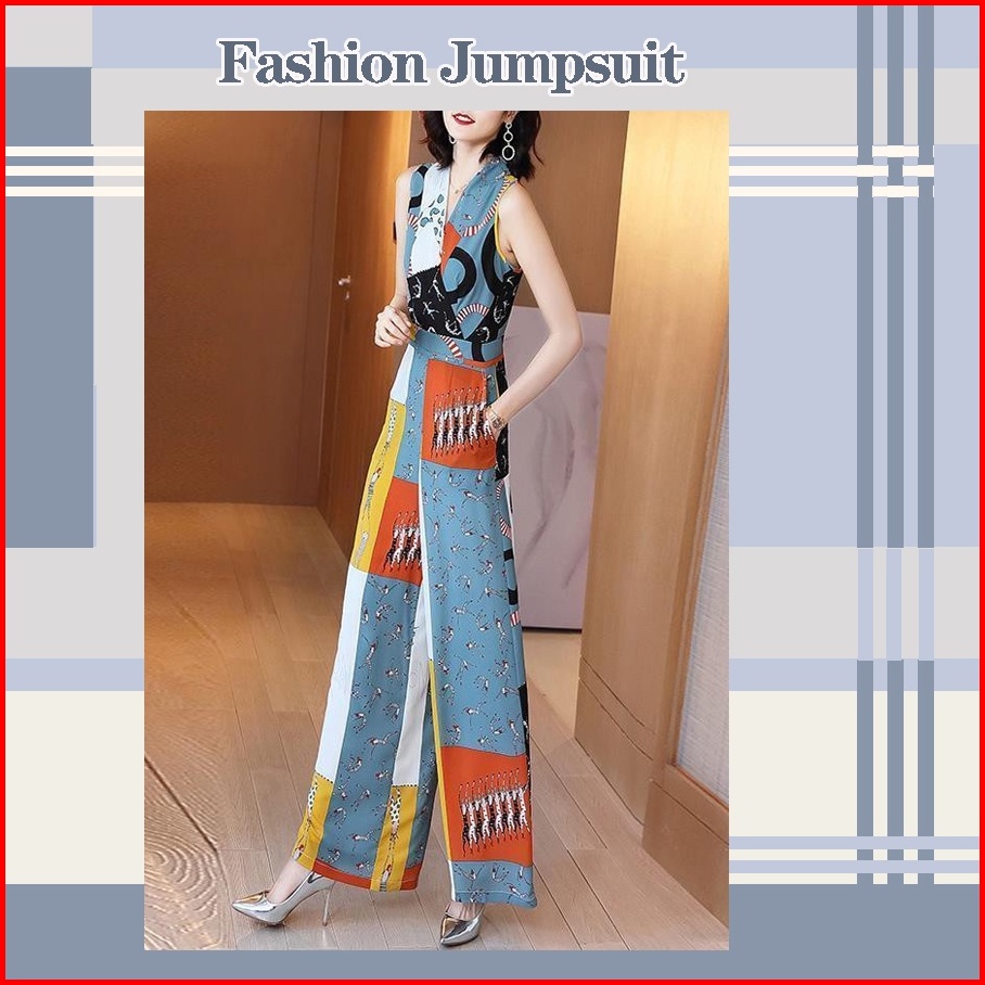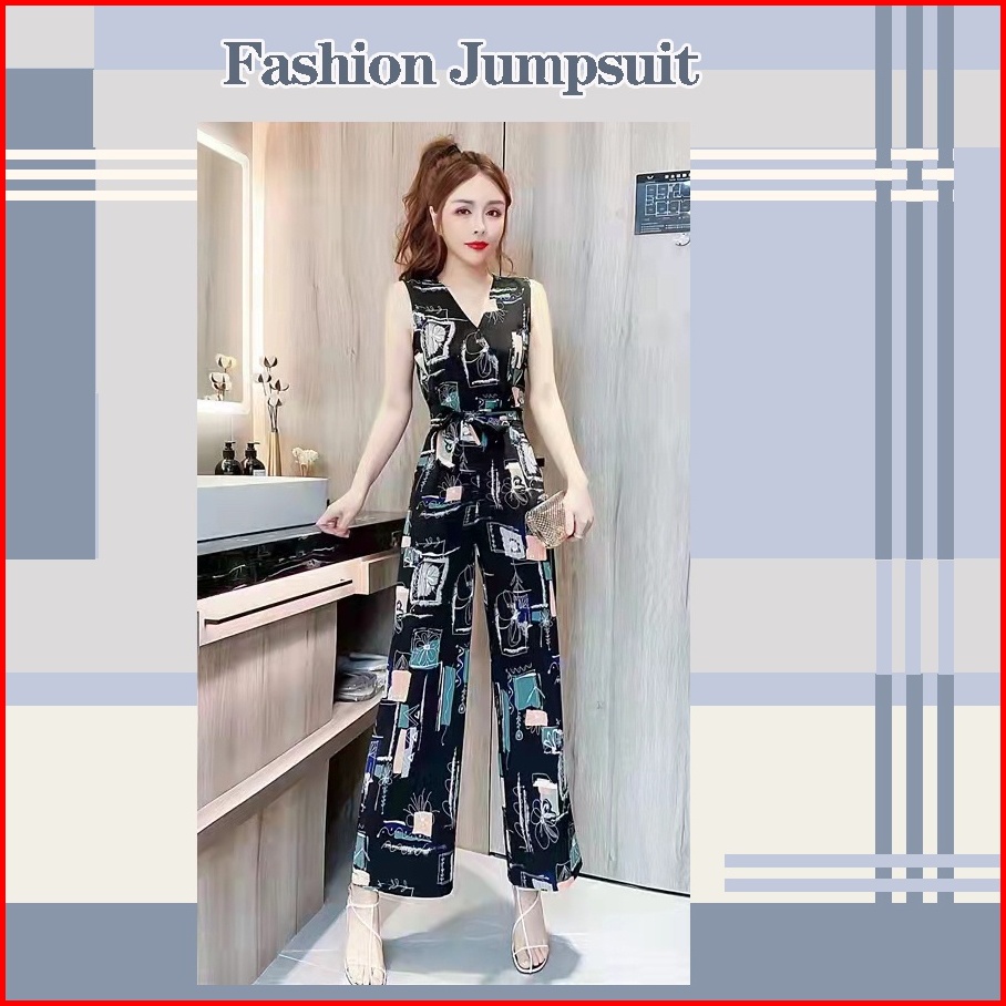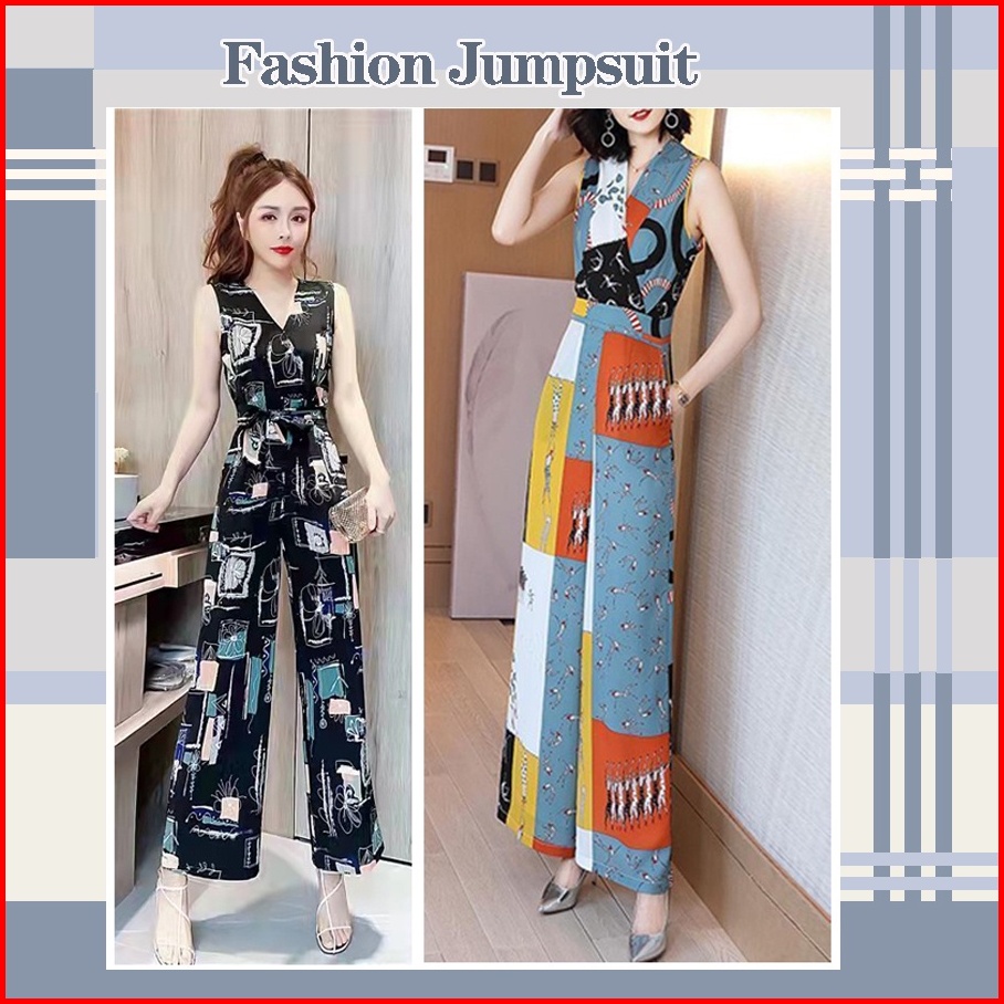 Jumpsuit Tanpa Lengan Ritsleting Belakang Celana Kaki Lebar Mode Gaya Korea Cocok Untuk Berat Hingga 60kg V-neck Style B