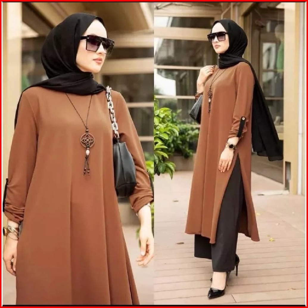 Atasan Tunik Long Crinkle Terbaru Terlaris Kekinian Terbaru Bahan Crinkle Airflow Premium