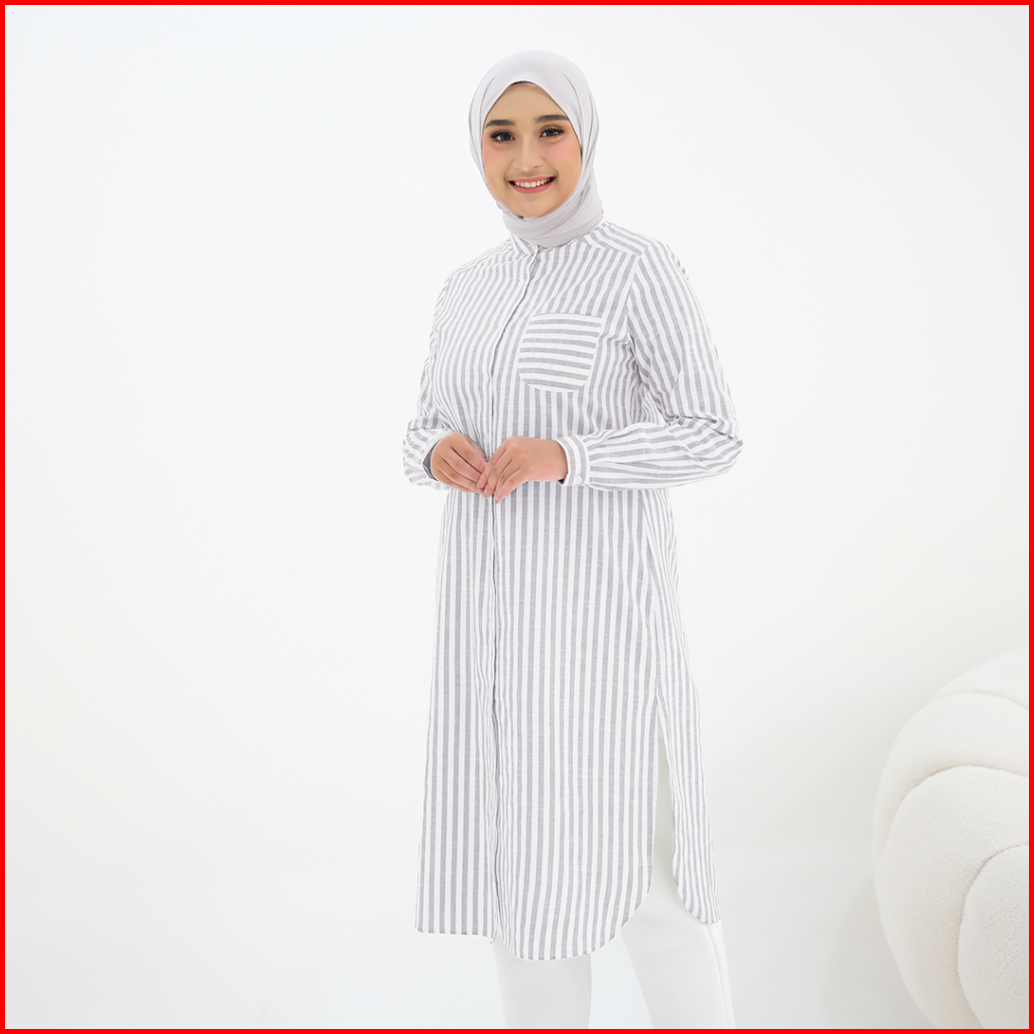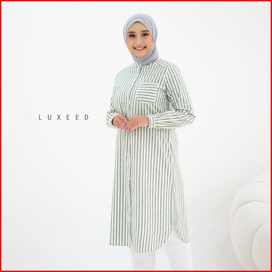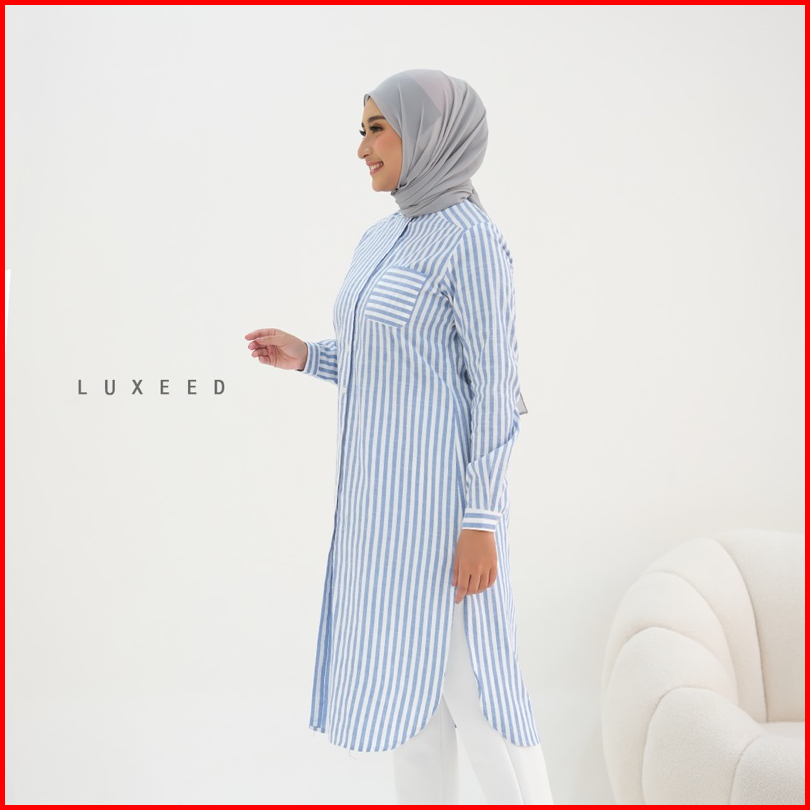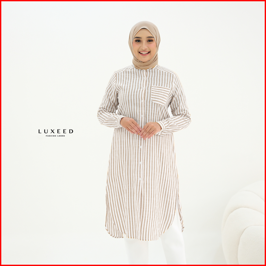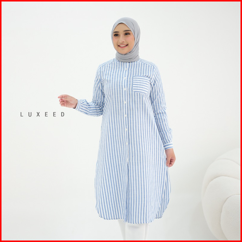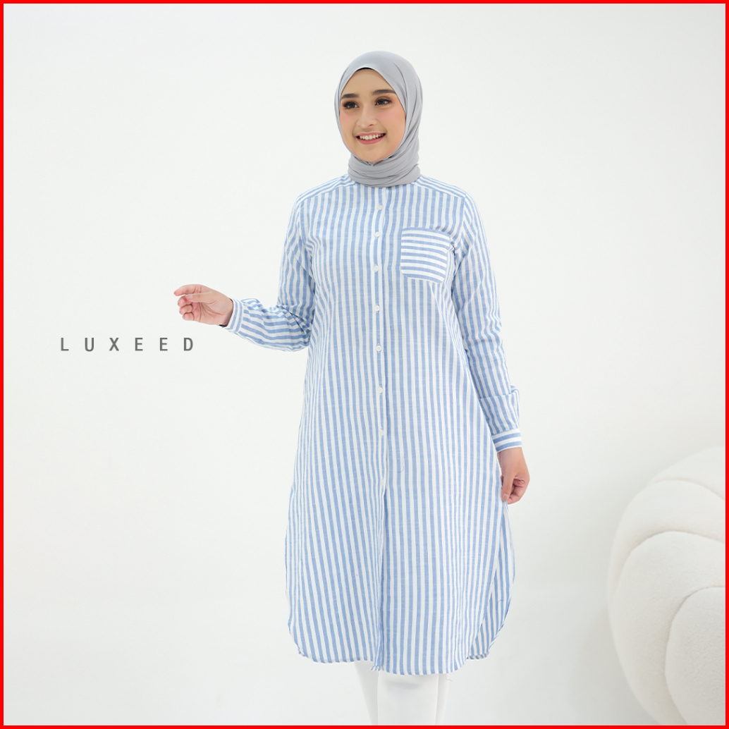 Tunik Salur Katun Oxford Wanita Terbaru By Luxeed