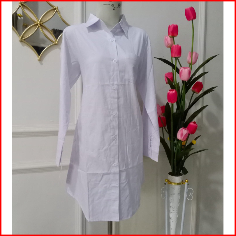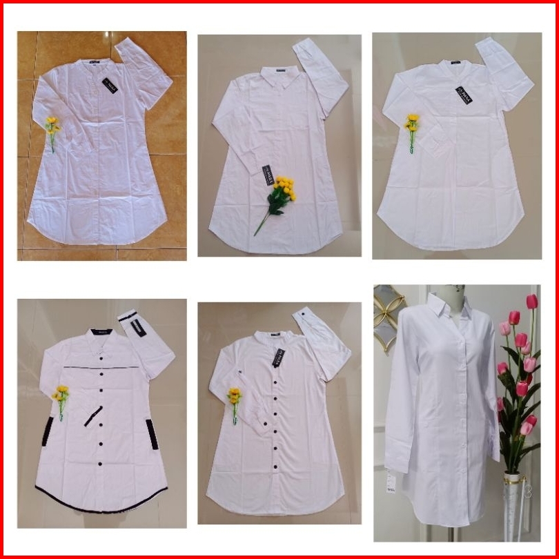 Hitam, Putih, Hitam polos, Putih plat, Kerah V KancingPutih, Putih., Blus putih, Putih plat Salur, Putih kancing hitam, Kerah V kancingHitam