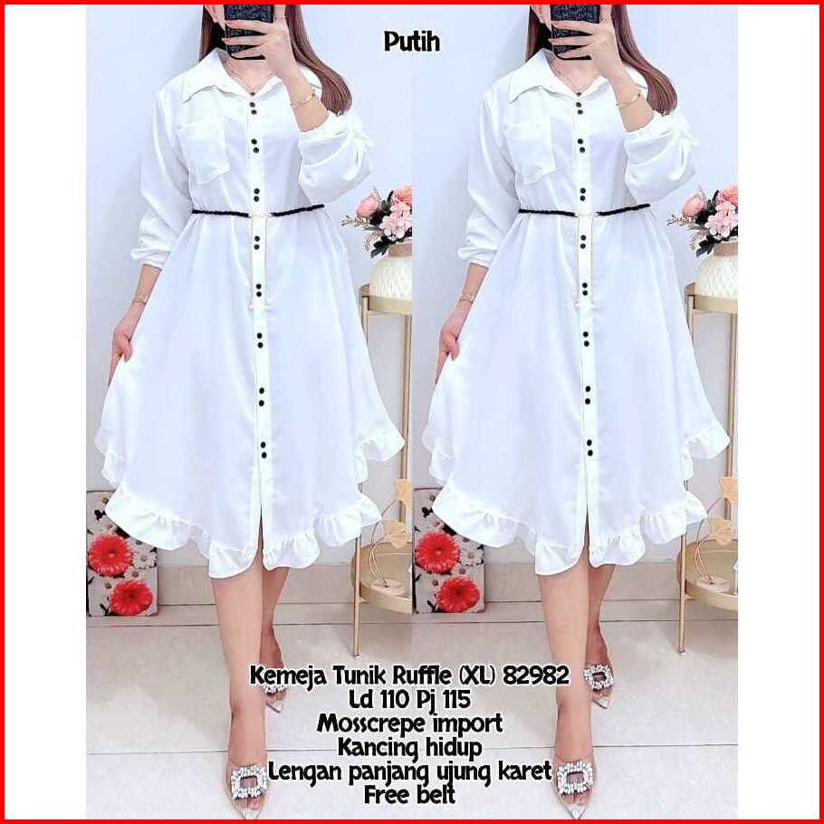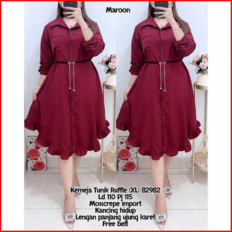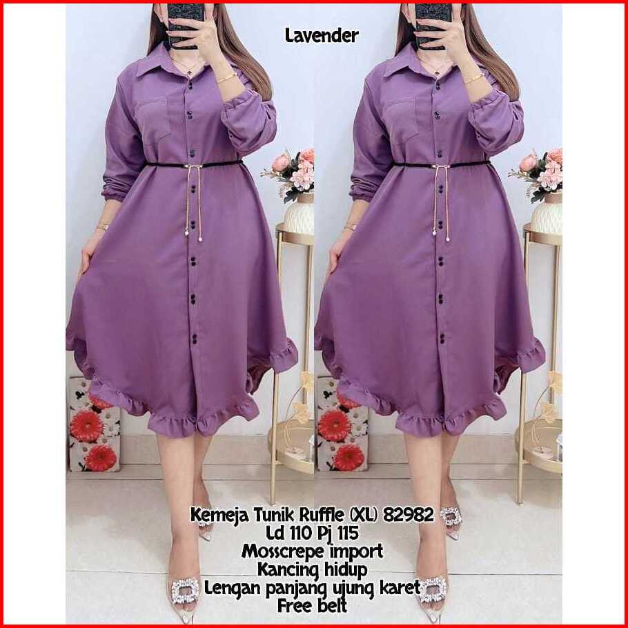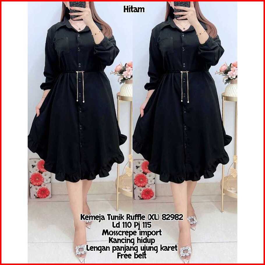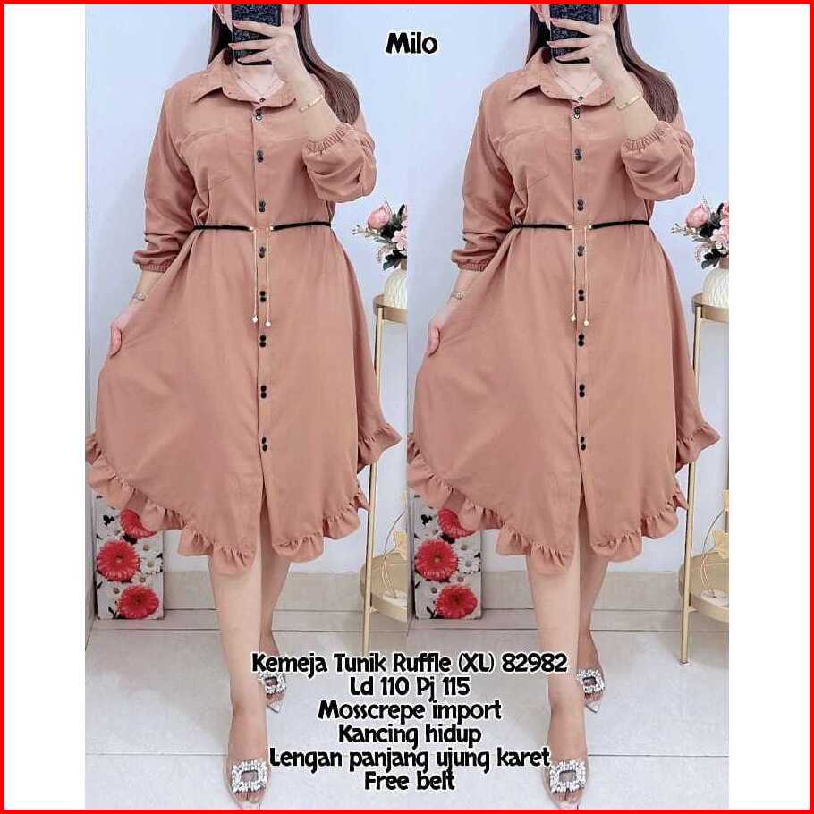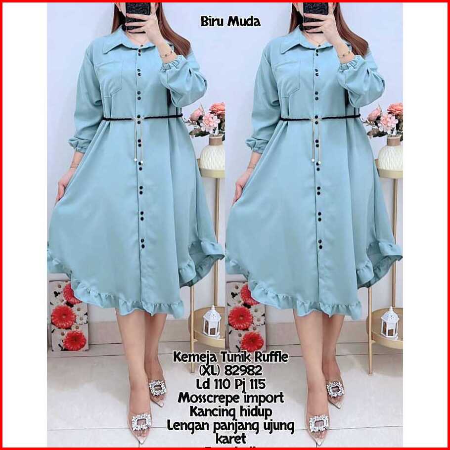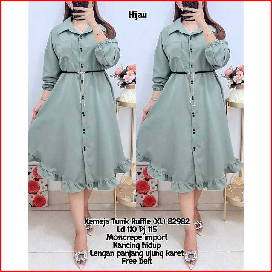 Kemeja Tunik Ruffle 82982 - Full Kancing - Atasan Muslim - Tali Pinggang Bisa Lepas - Fashion Muslim