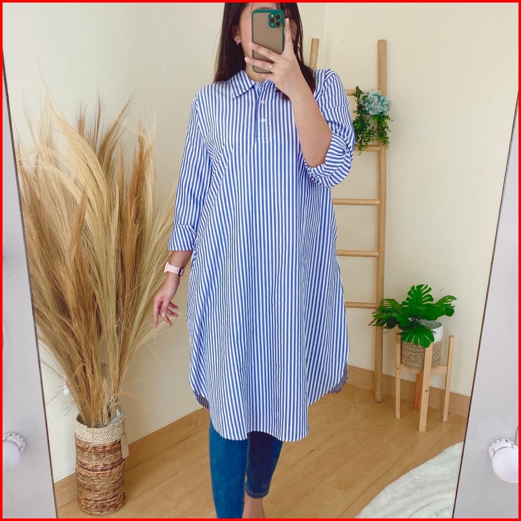 Long Tunik Katun Sm Stripbiru 110 Modis