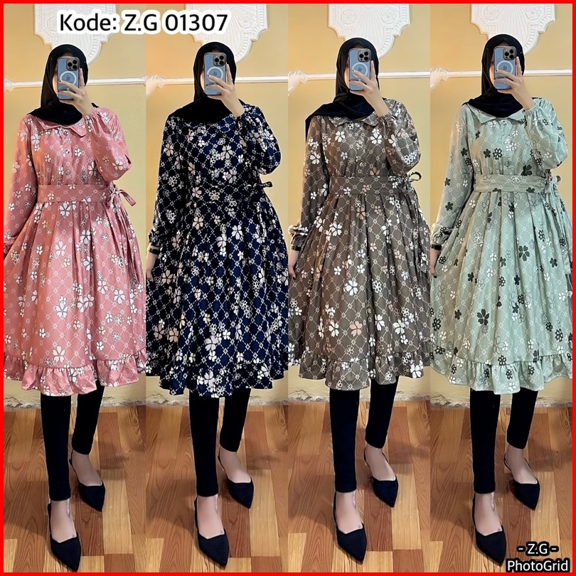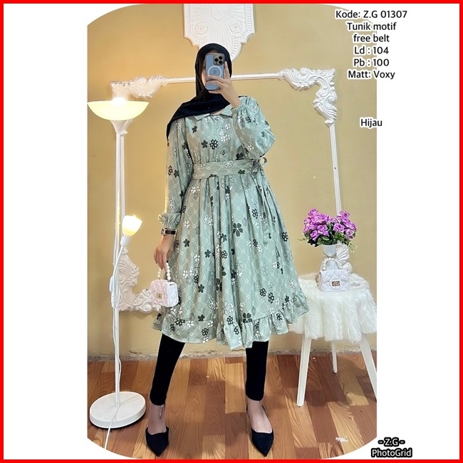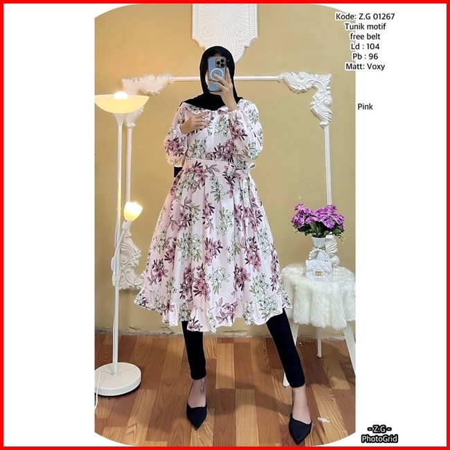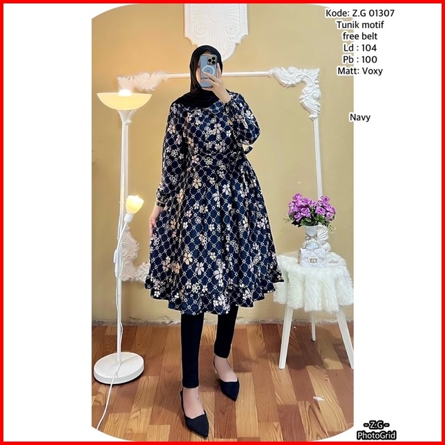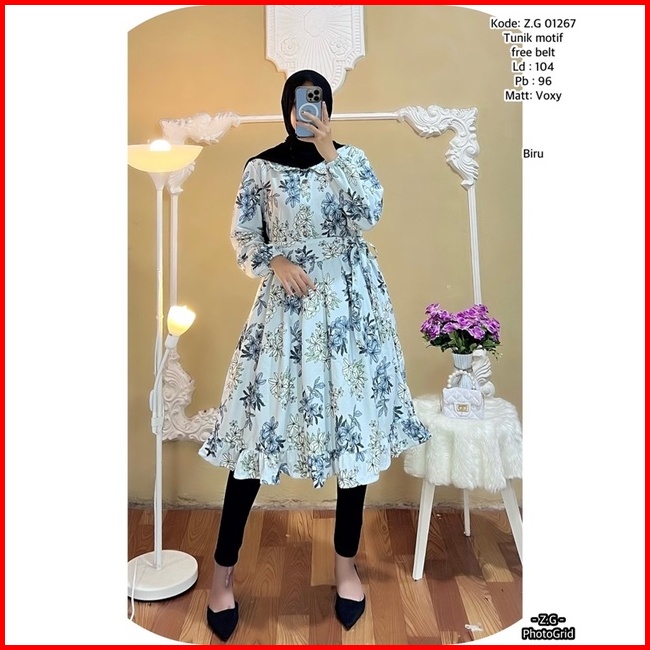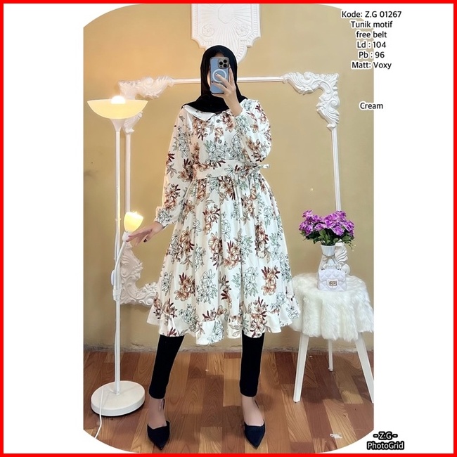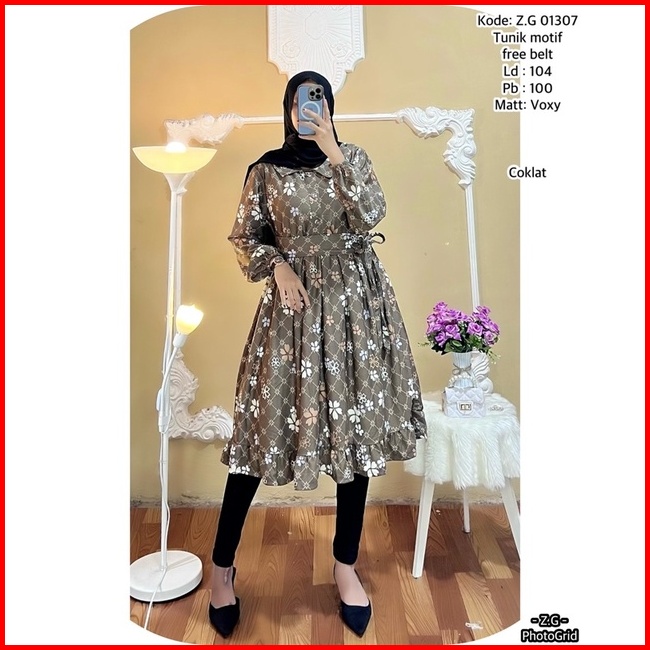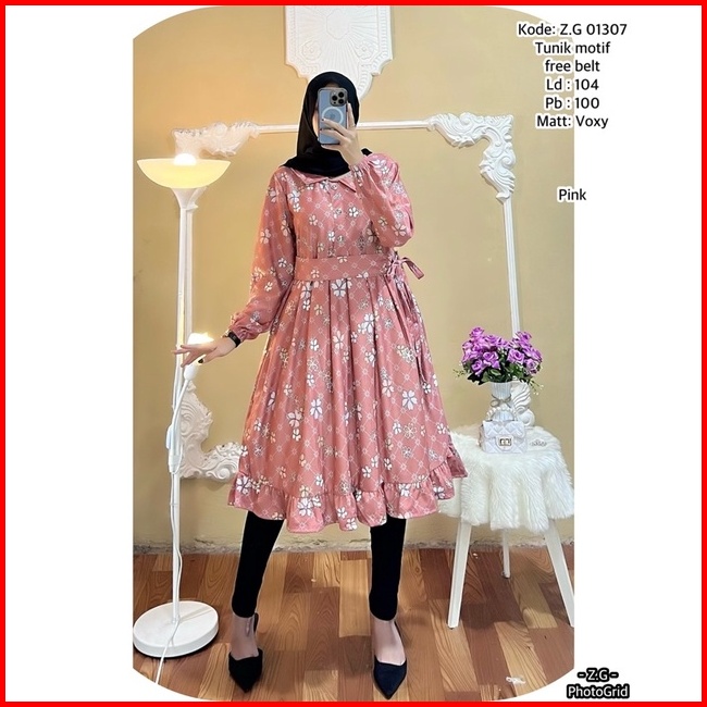 Tunik Terbaru Bahan Voxy Premium Tunik Wanita Free Belt Motif Terbaru Long Tunik Dress Terbaru
