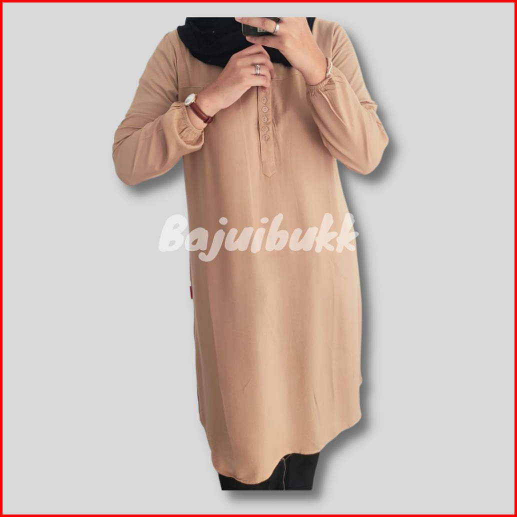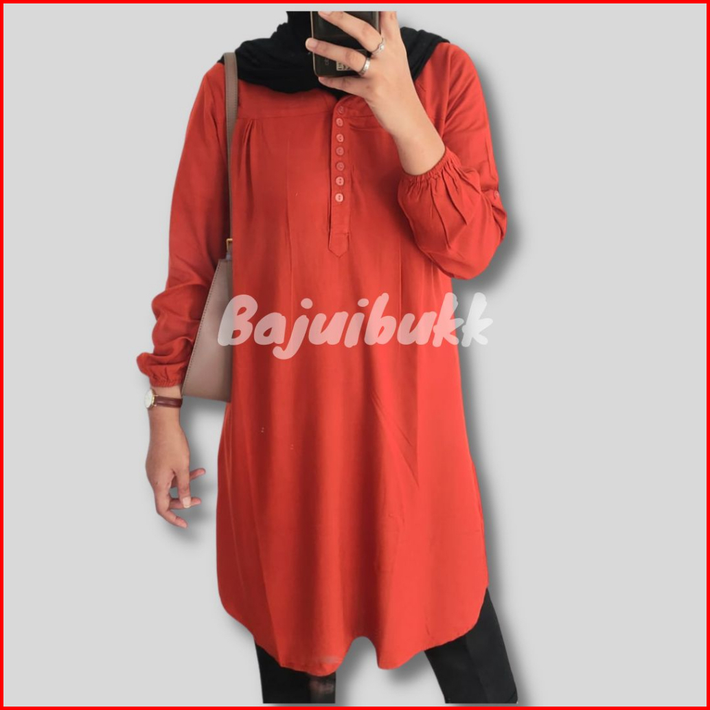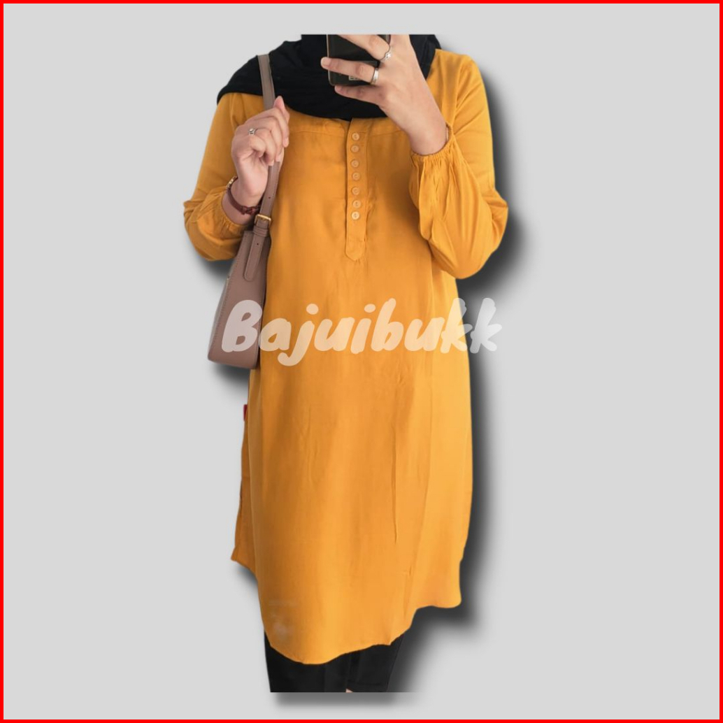 Tunik Polos Rayon Putih Jumbo Oversized Atasan Wanita Kancing Hidup
