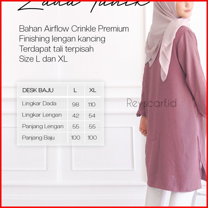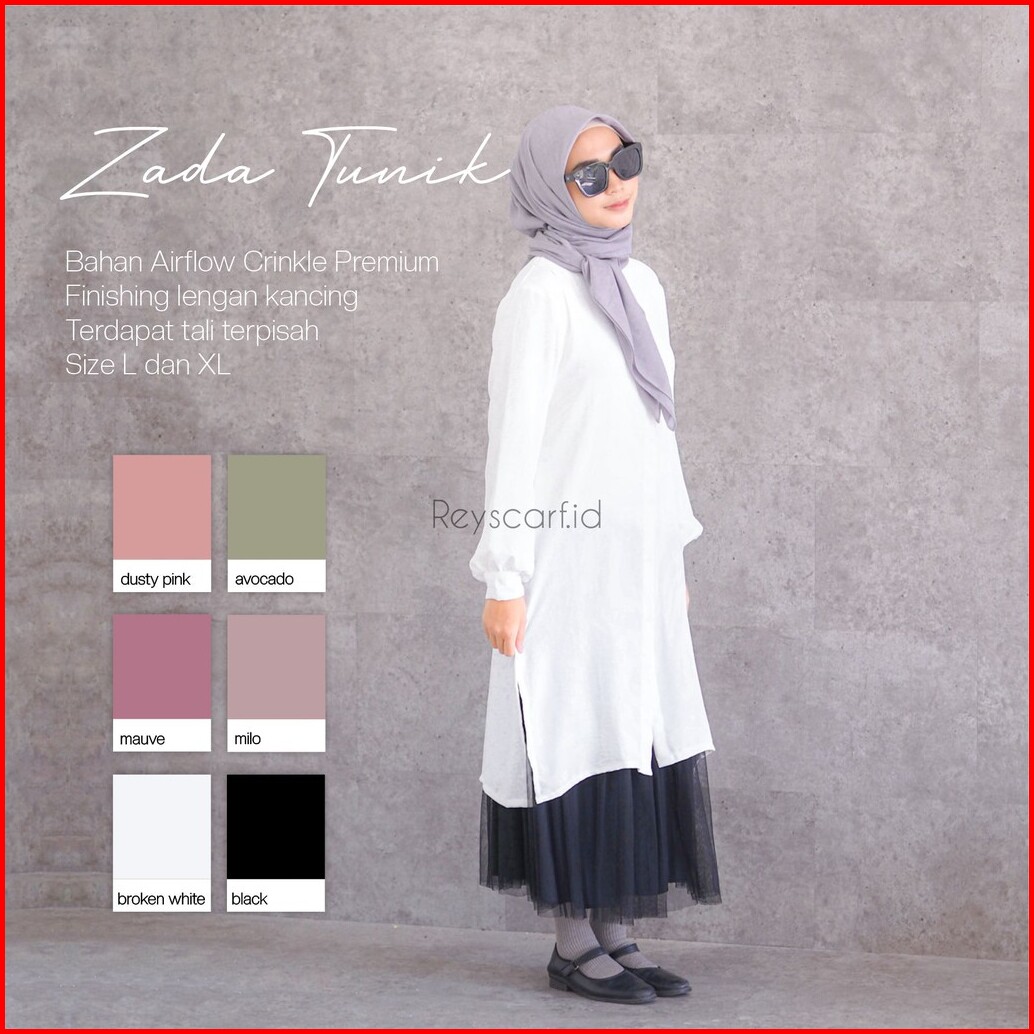 Tunik Zada By Reyscarf Tunik Dewasa Luxury Bahan Airflow Crinkle Premium Nyaman Dipakai I