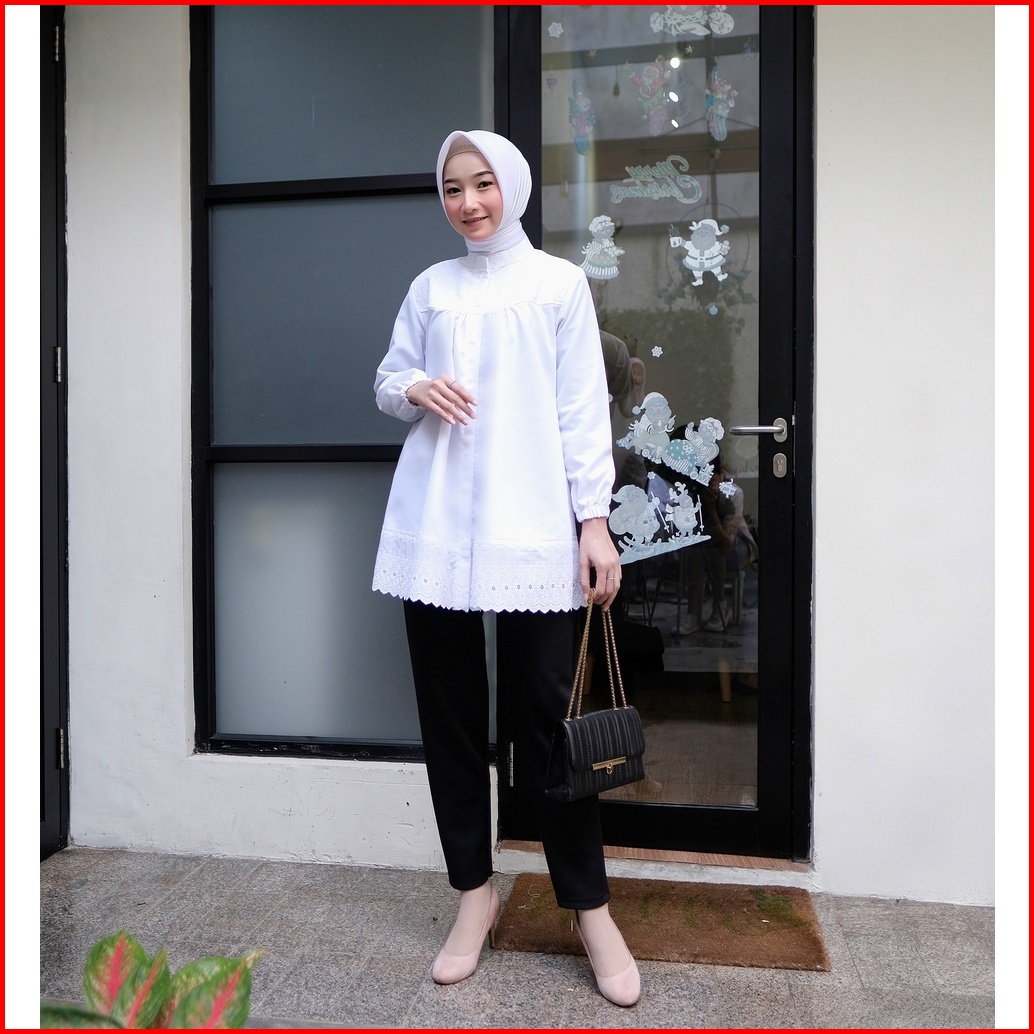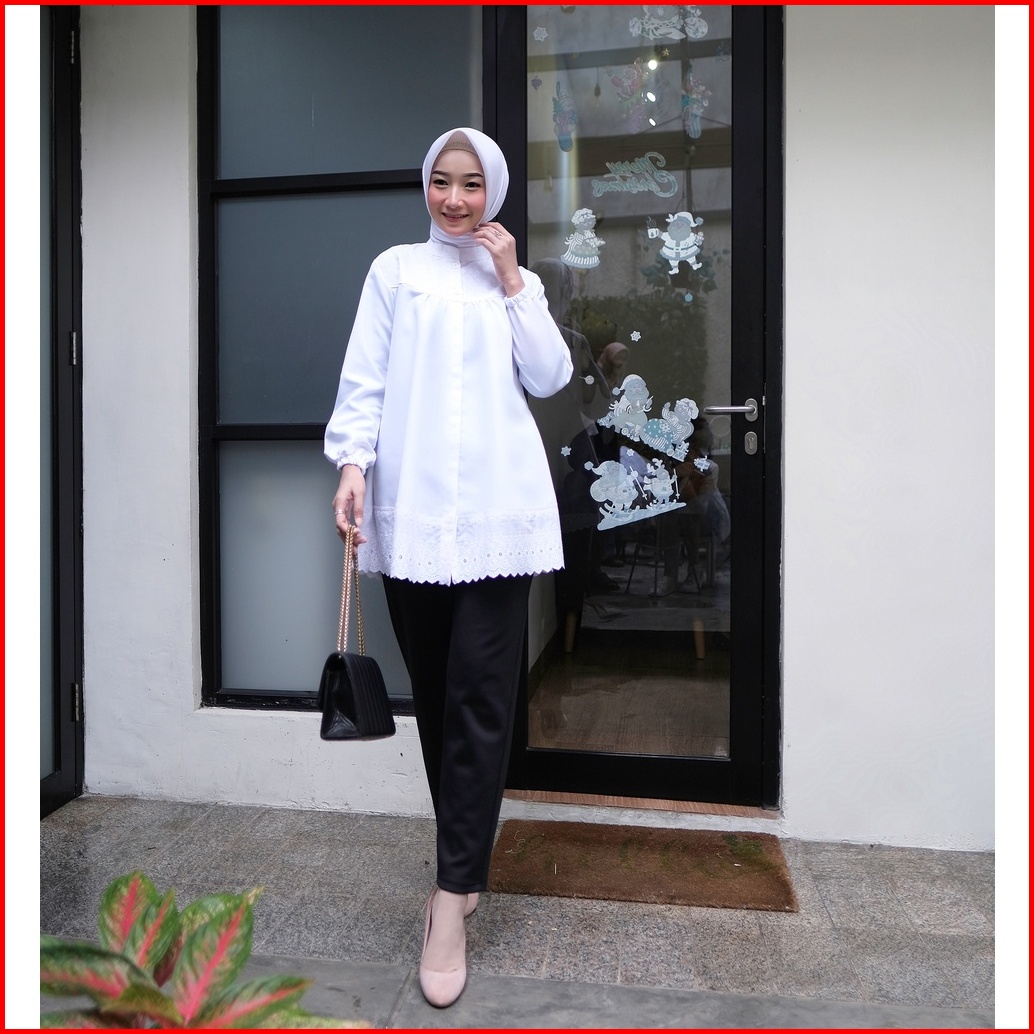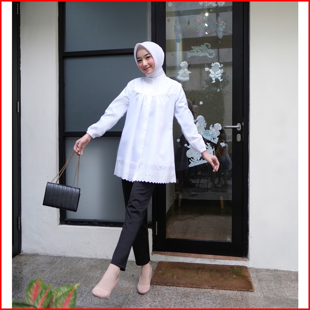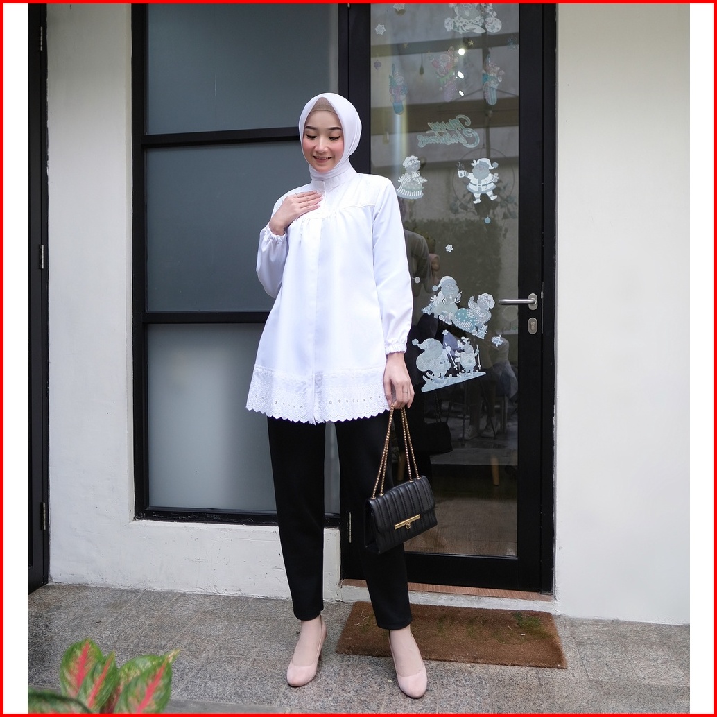Lyra Blouse Atasan Baju Putih Wanita Muslim Kerja Terbaru Bordir