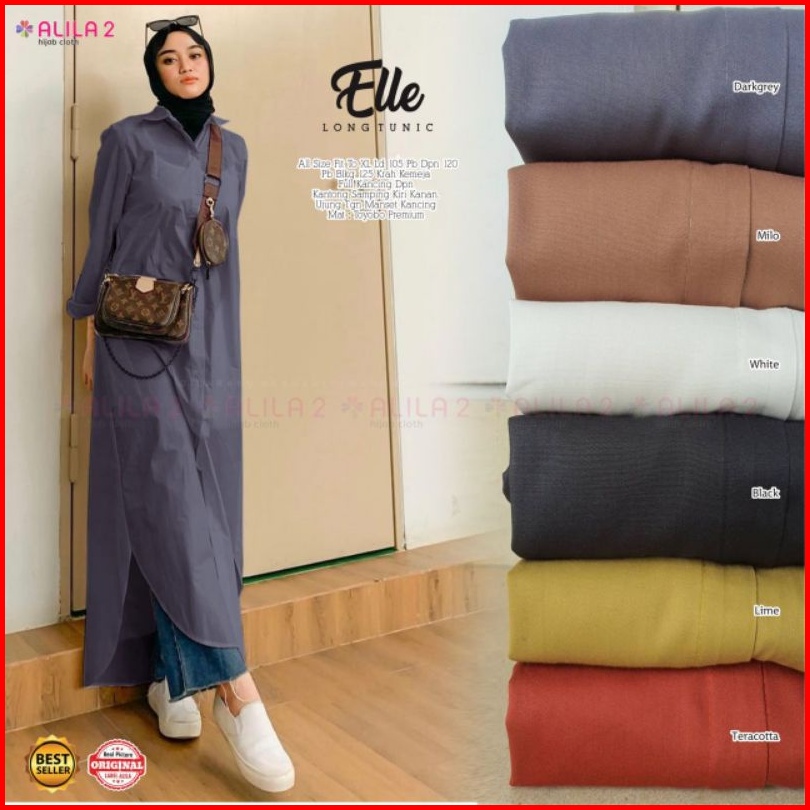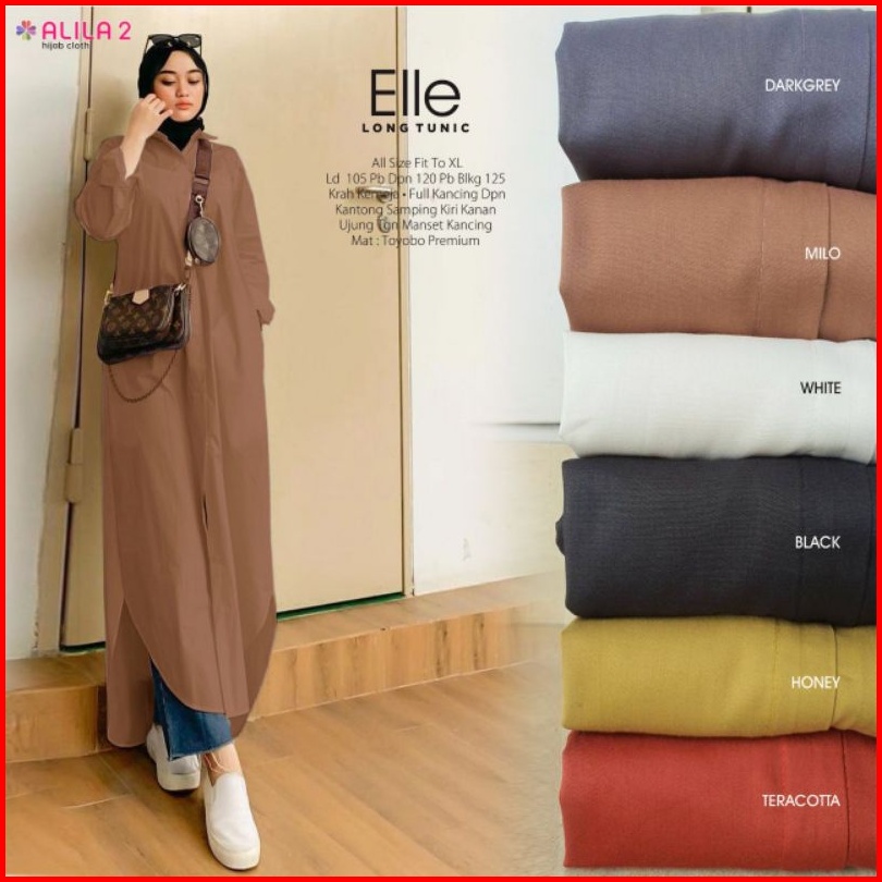 Busana Wanita Fashion Hq Muslim Elle Long Tunik Toyobo Premium By Alila Ld 105 Pb 120