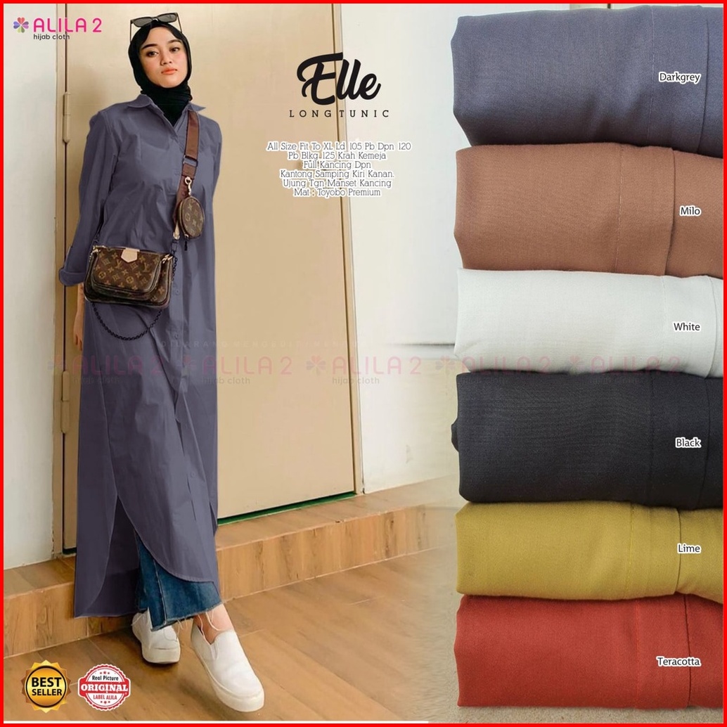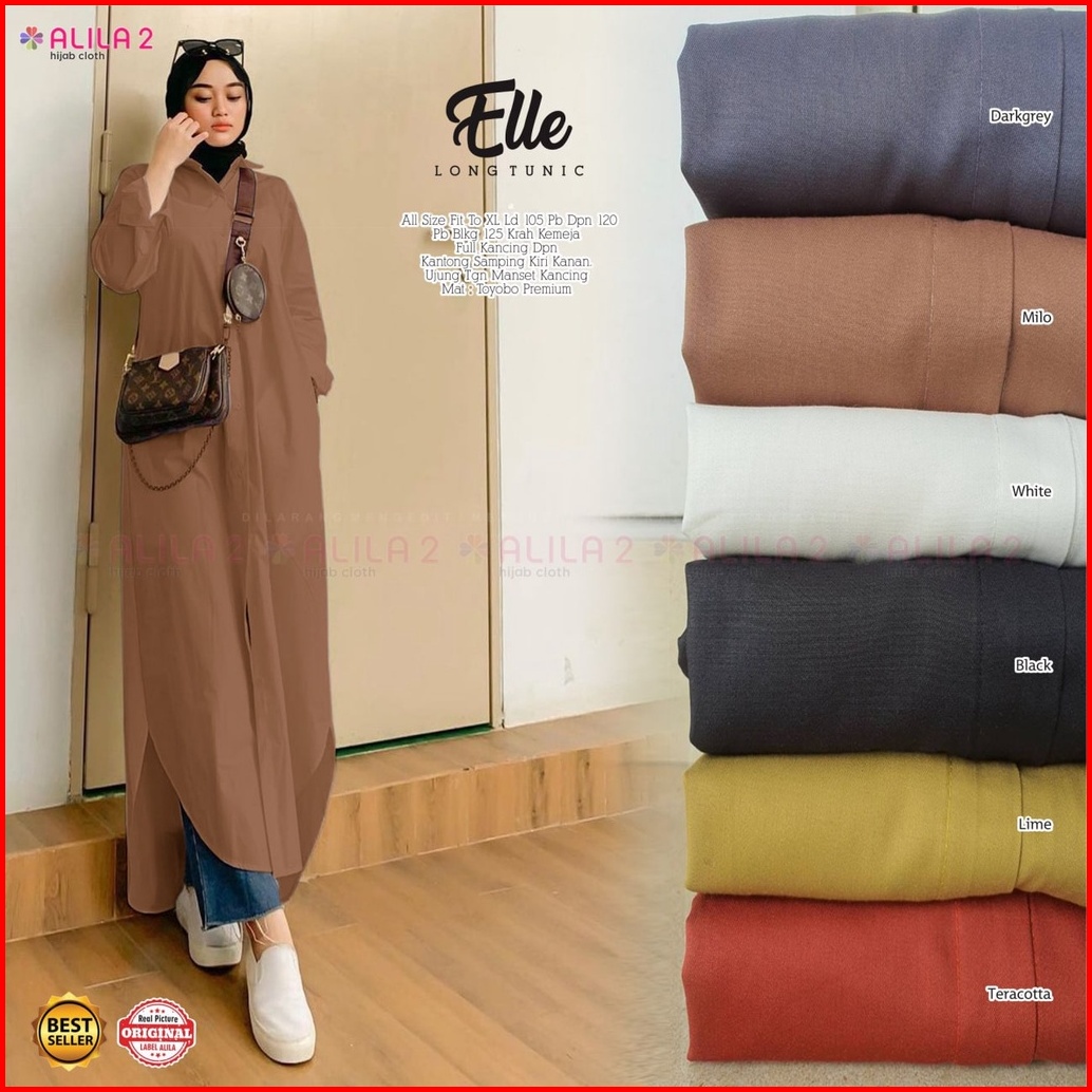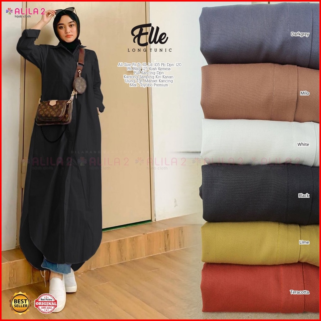 Long Tunik Atasan Polos Wanita Atasan Tunik Busui Motif Polos Elle Long Tunik Krah Kemeja Bahan Katun Toyobo Premium
