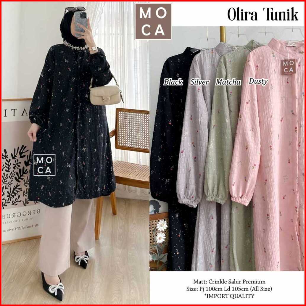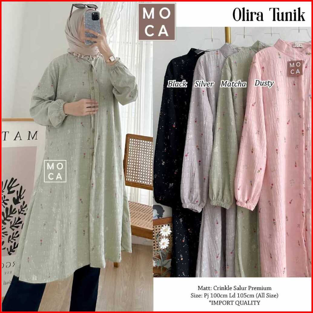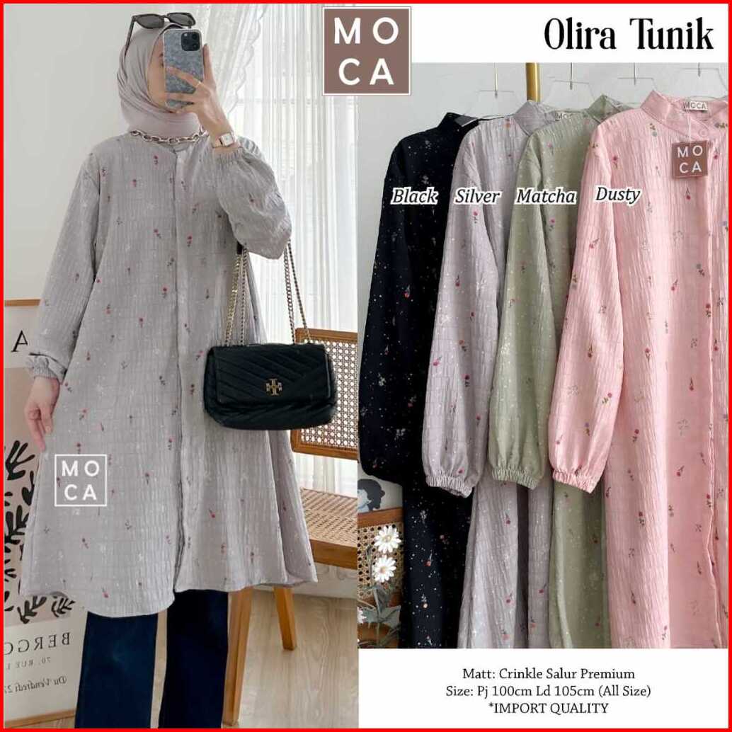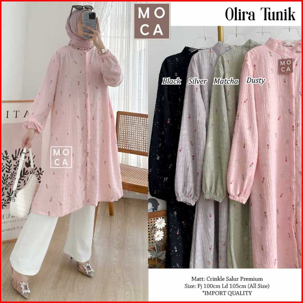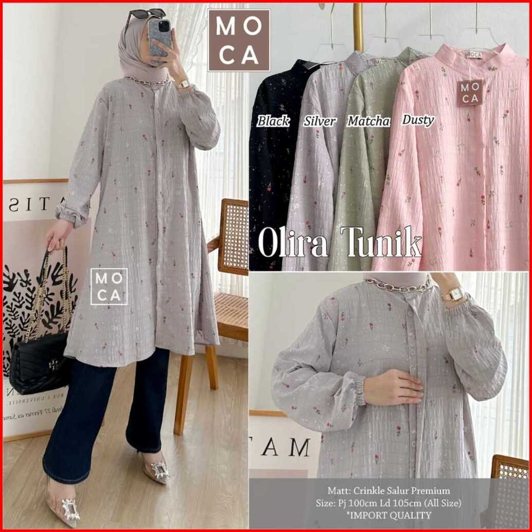 Olira Tunik By Moca Ld 105 Allsize Tunik Motif Bunga Bahan Crinkle Salur Premium Busui Friendly