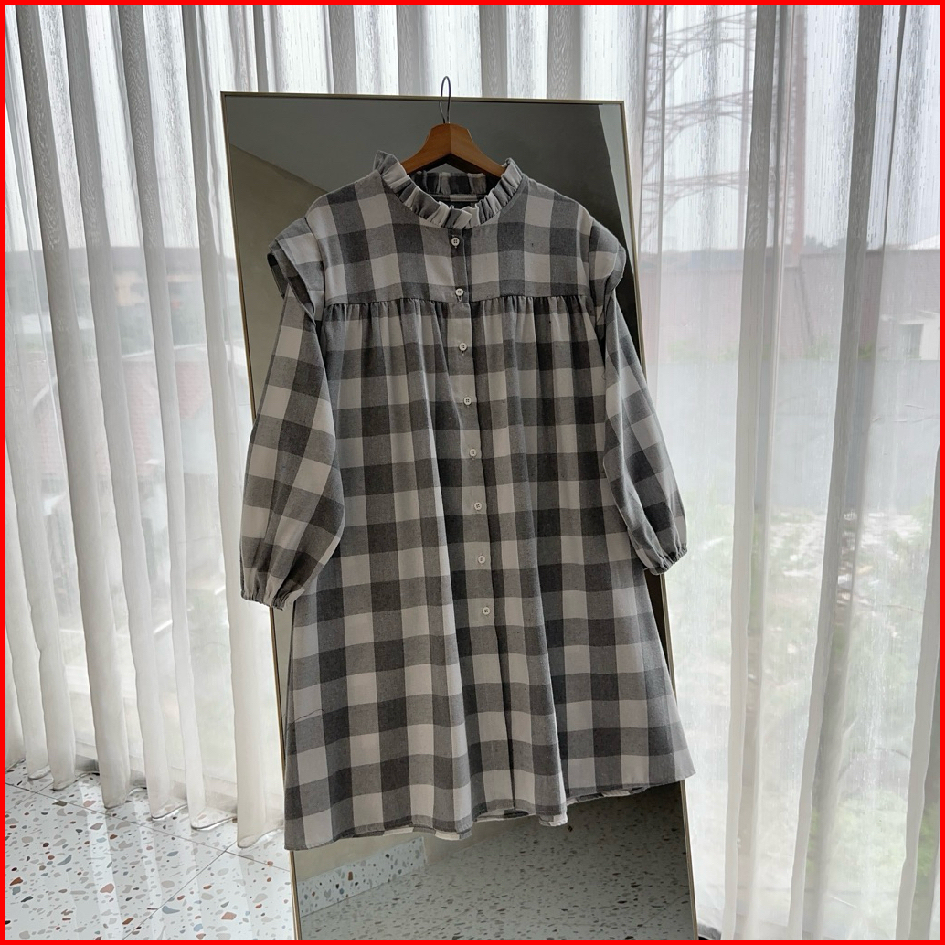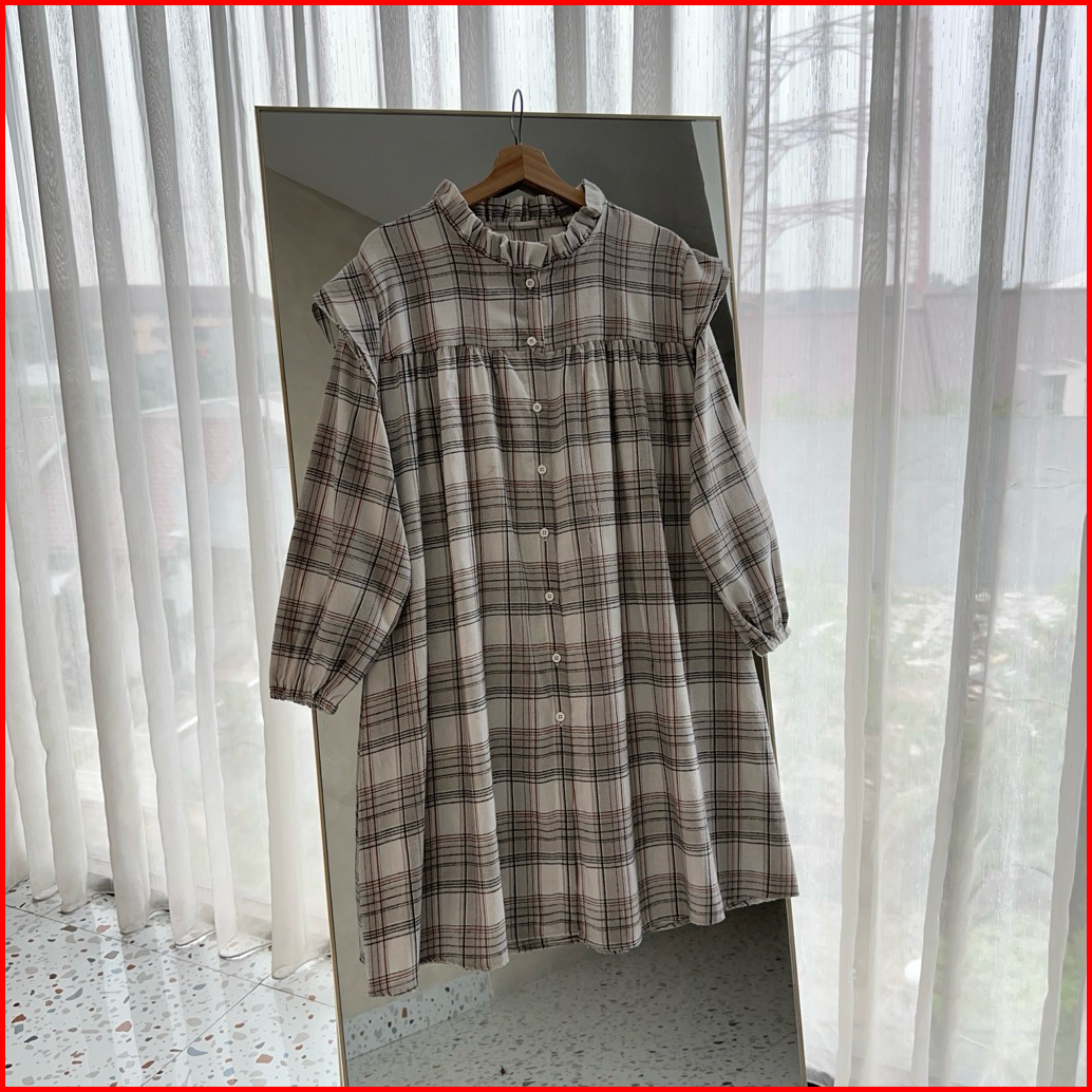 Myshirt Tunik Flanel Rempel Motif Kerah Bulat