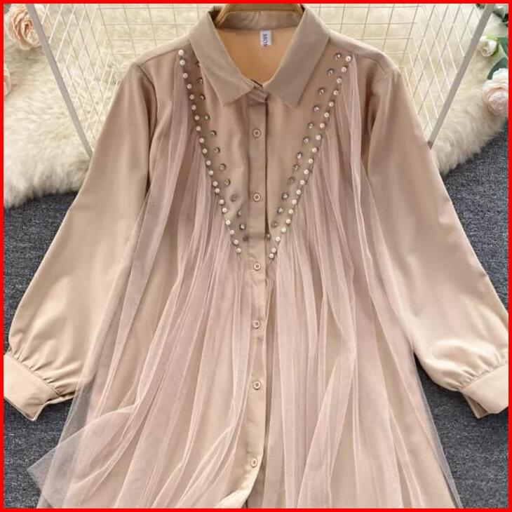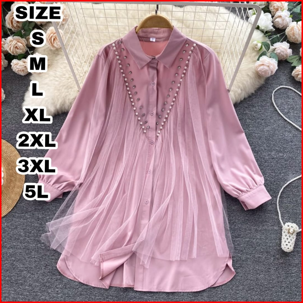 Risa Kemeja Wanita Mix Tile Aplikasi Mutiara Jumbo Tunik Big Size Tunik Over Size S M L Xl Xxl 3xl 5 L Atasan Kancing