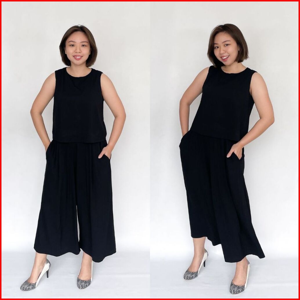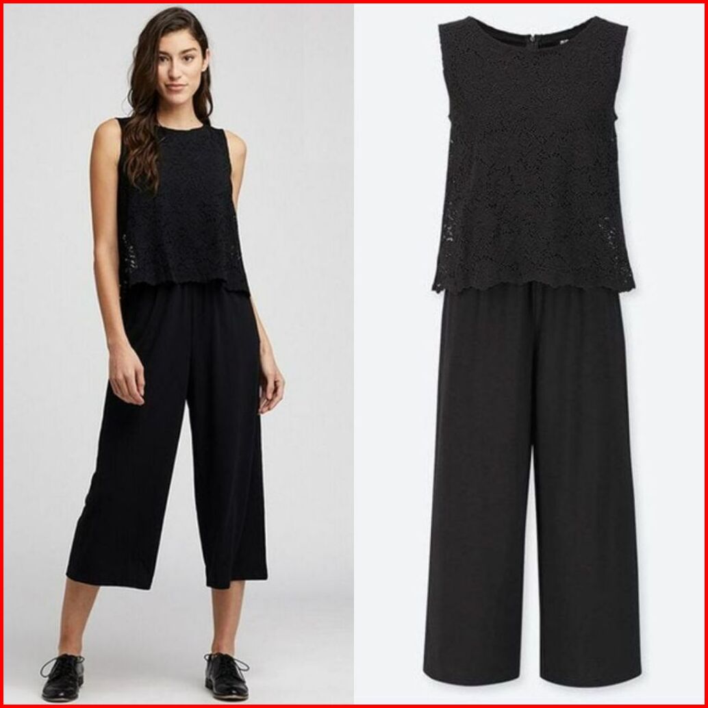 Sleeveless Ribbed Lace Jumpsuit Cullote Women - Jumpsuit Set Wanita