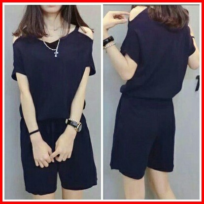 Rf - Jump Jumpsuit Wanita Rihanna Polos Ada Warna Hitam Dan Navy Bahan Katun Rayon Premium Halus Uk Xl-xxl Ld 102-106cm