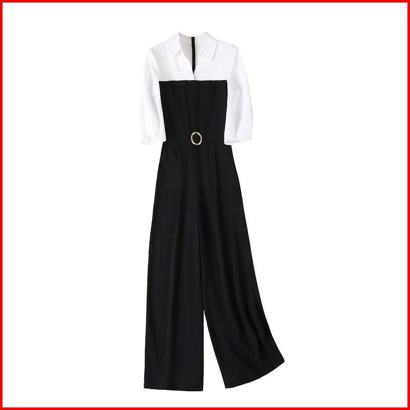 Jumpsuit Elegan Hitam Putih Bahan Melar M239