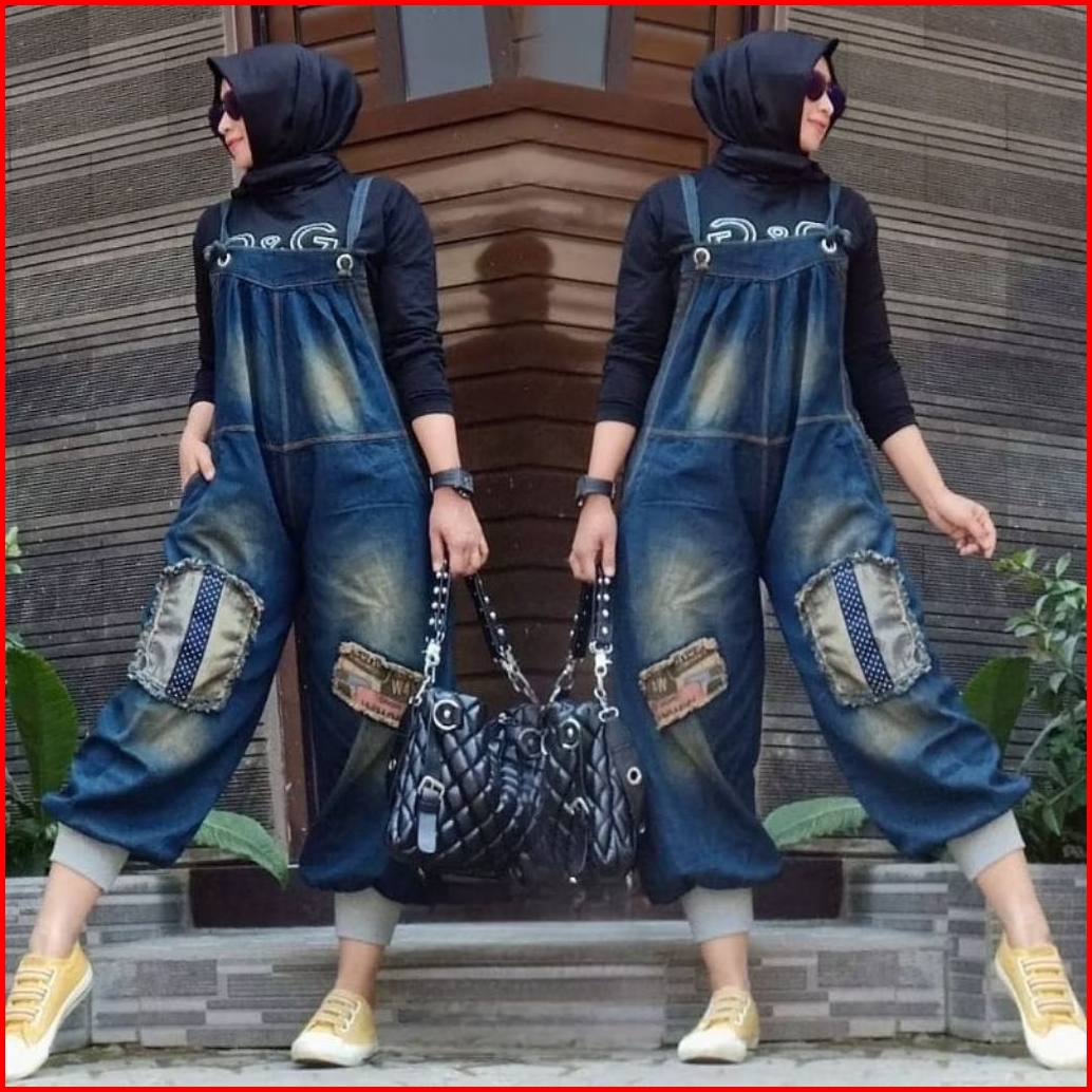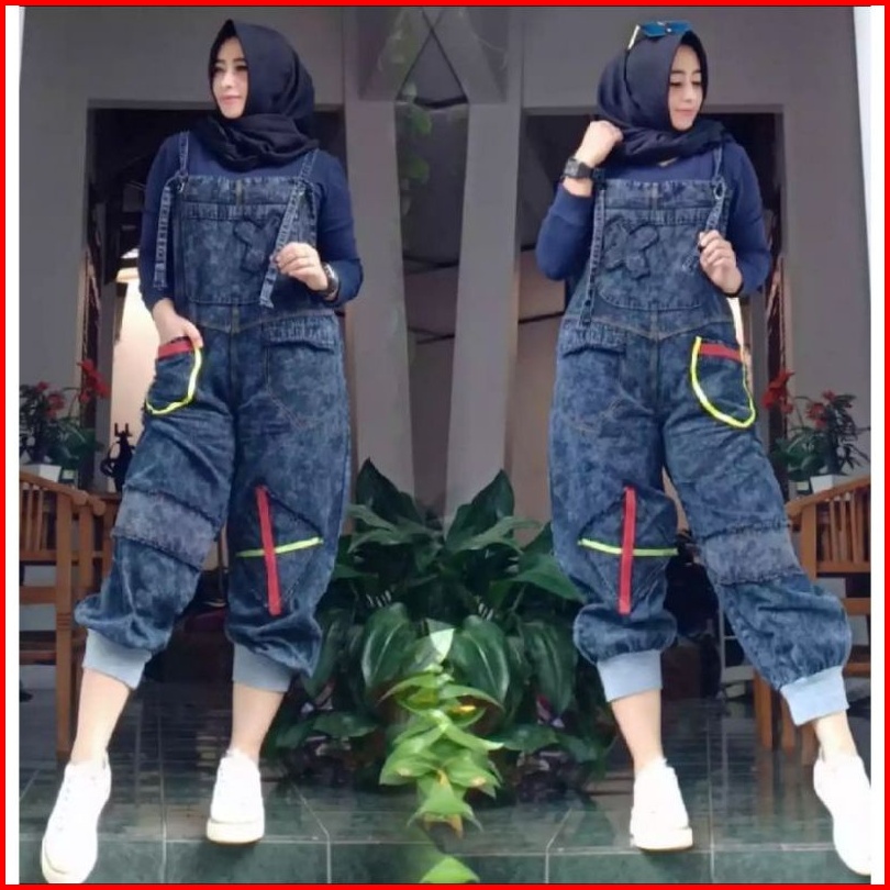 Jampsuit Jeans Snow Wash Kece Baju Kodok Denim Wanita Kekinian Jampsuit Casual