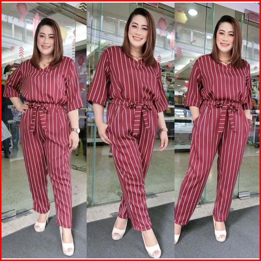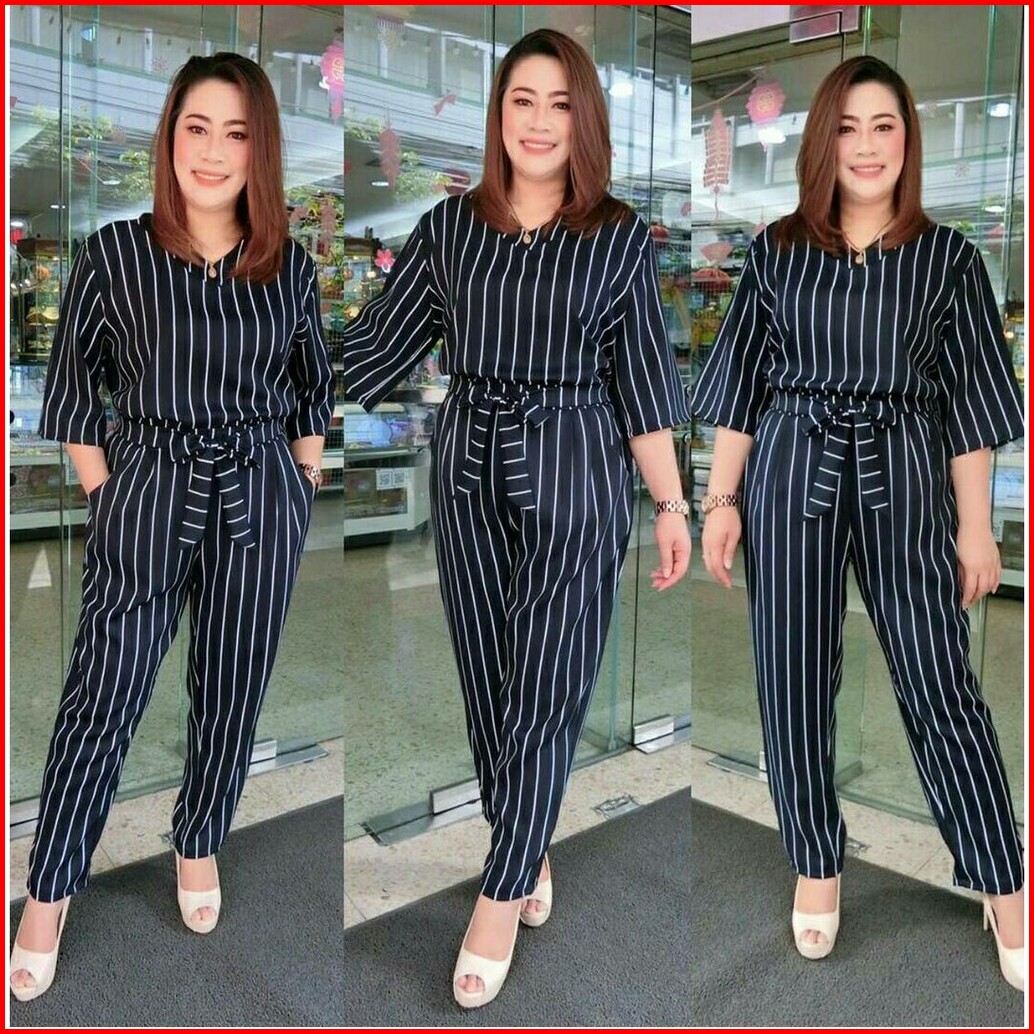 Jumpsuit Sella Katun Salur Sz M L Xl Dan Xxl Jumper Baju Kodok Matt Katun Ada Size Jumbo Xxl Jumpsuit