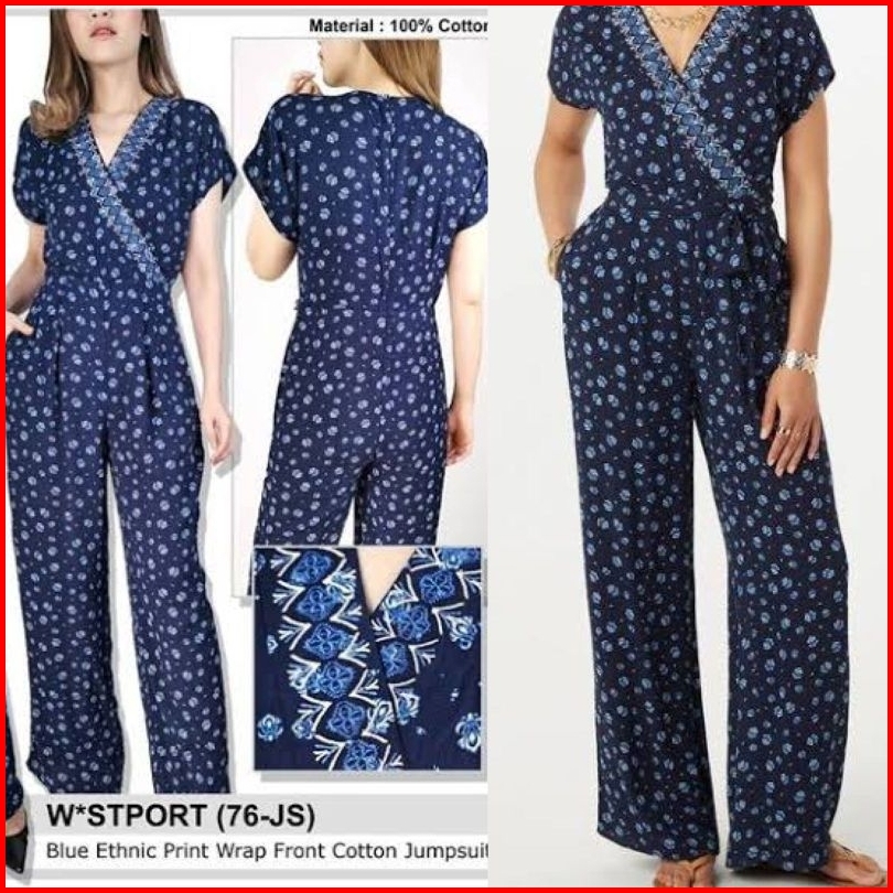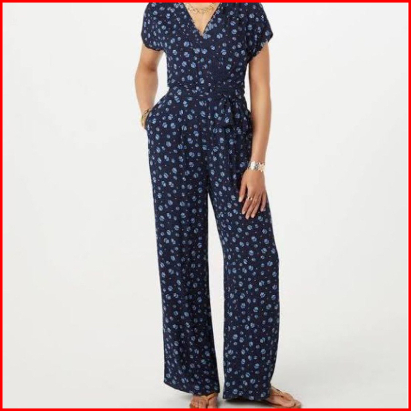 Jumpsuit Worthington Navy Bunga Katun Adem