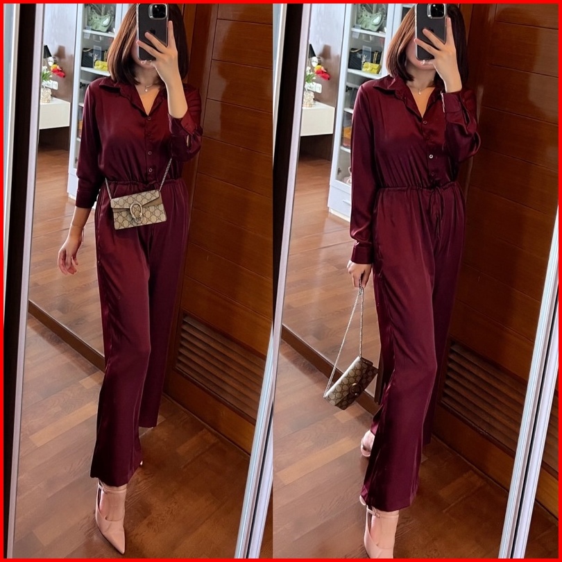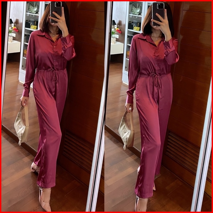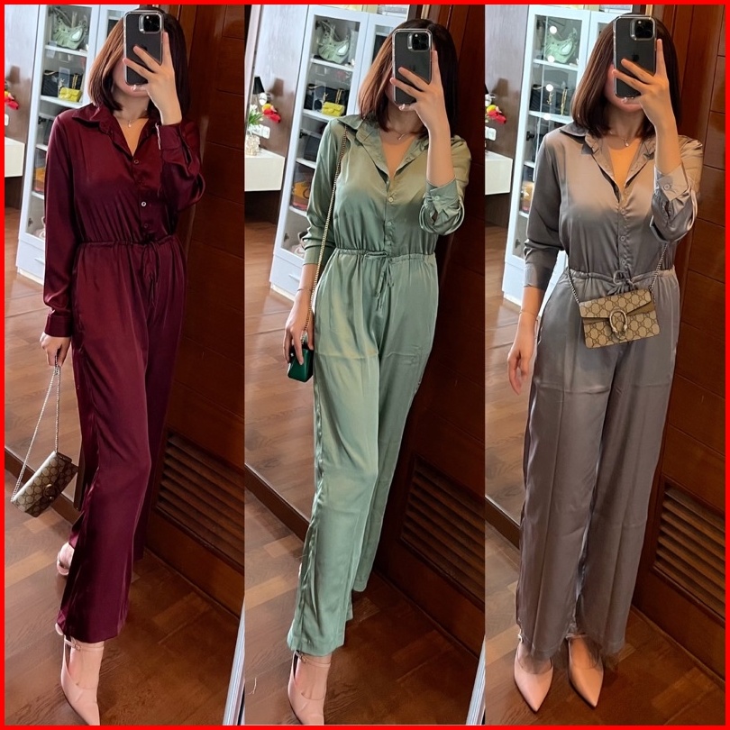 Jumpsuit Silk Full Kancing Hidup Jumpsuit Mewah Busui Friendly