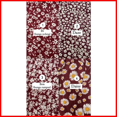 Blue, Navy, Nude, Black, Mint, Brown, Dusty Pink, Maroon, Plum, Abu-abu, Yellow, Olive, Sakura abu, Brm.black, Cherry hitam, Brm.pink, Brm.ginger, Brm.navy, Bs.maroon, brm.maroon, Sage, Square blue, Hitam abu, Abu kuning, Peach navy, Padi maroon