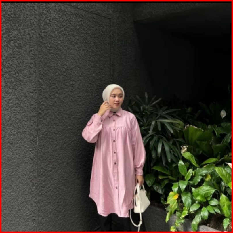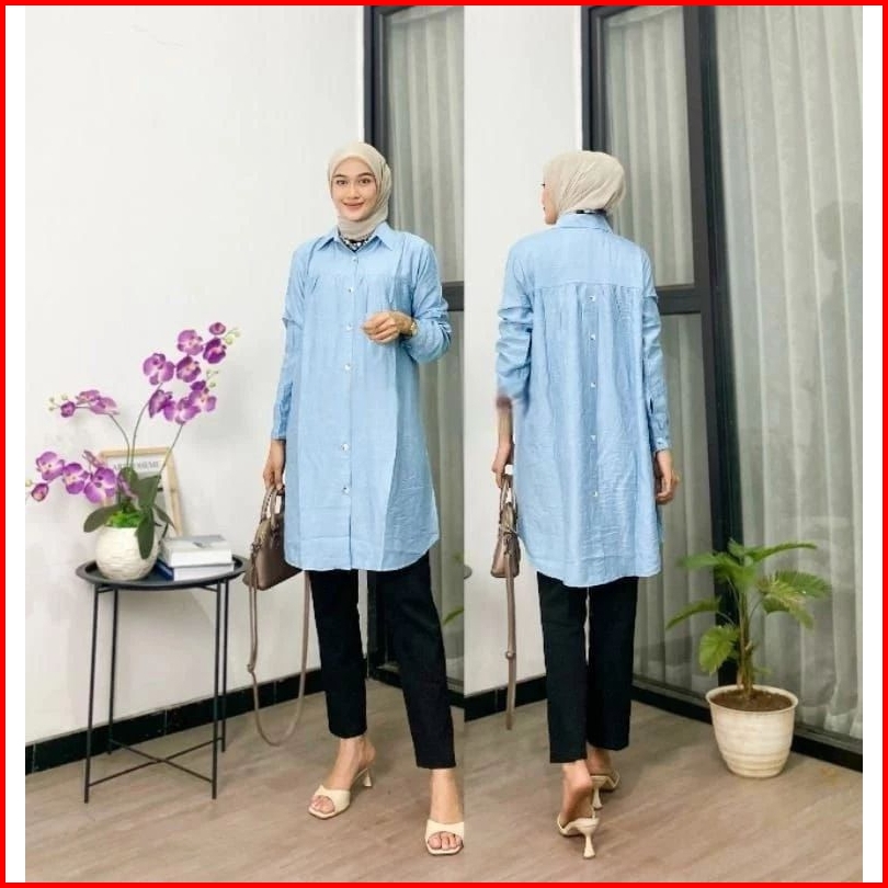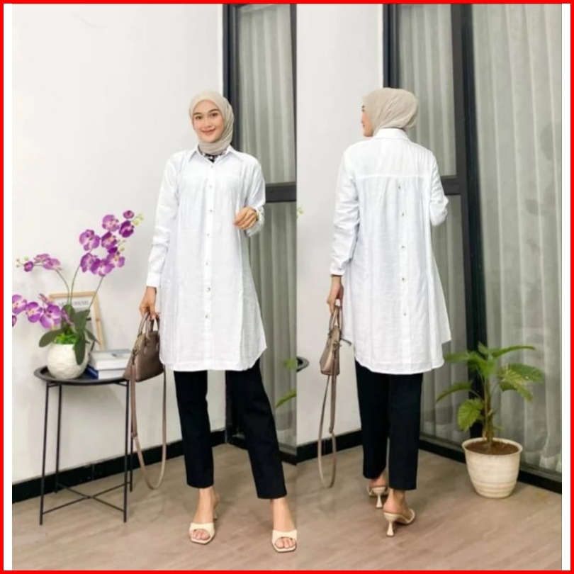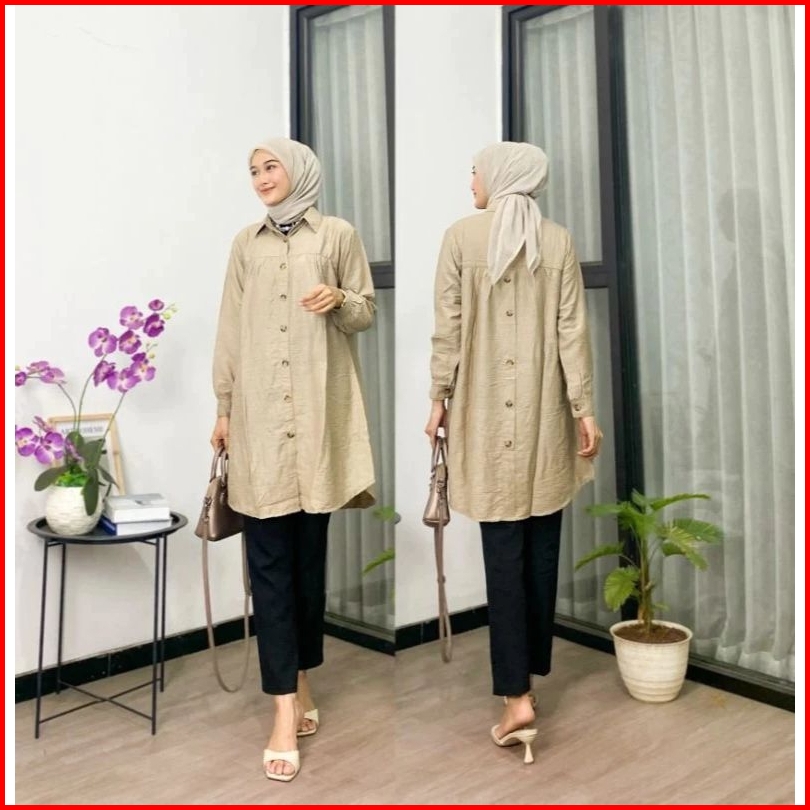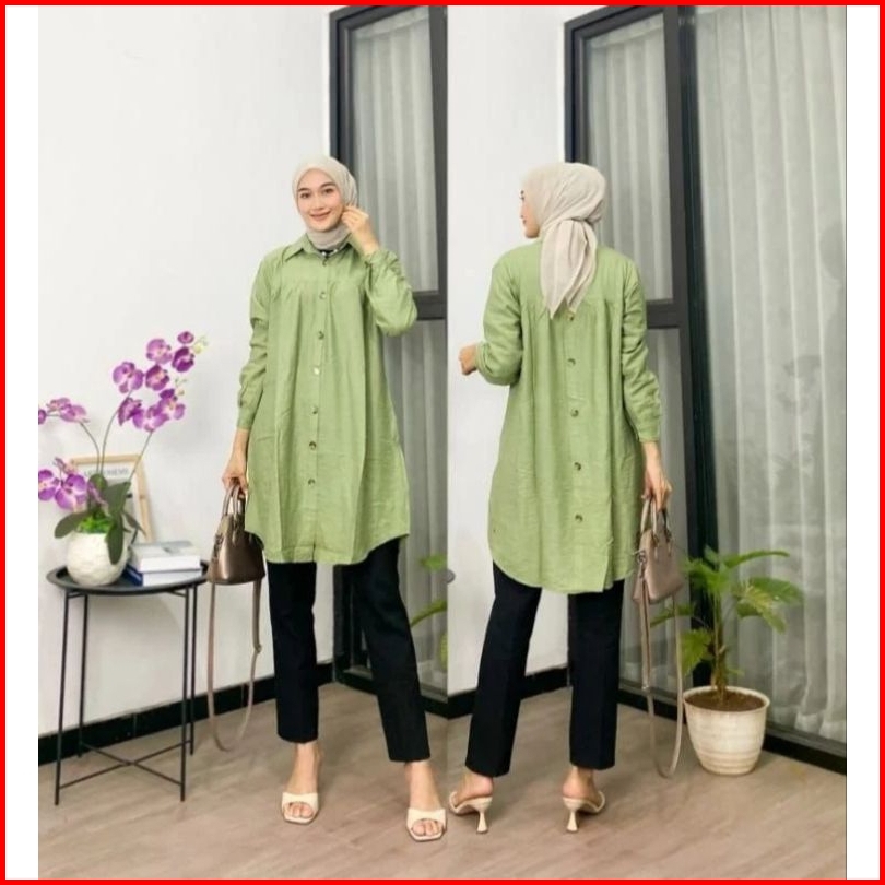 Zeffa Tunik Polos Polo Linen - Atasan Wanita Kekinian - Kancing Depan Aktif Variasi Kancing Belakang