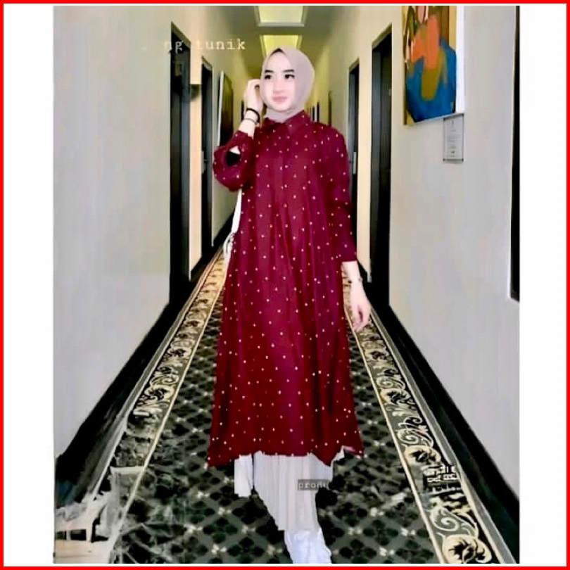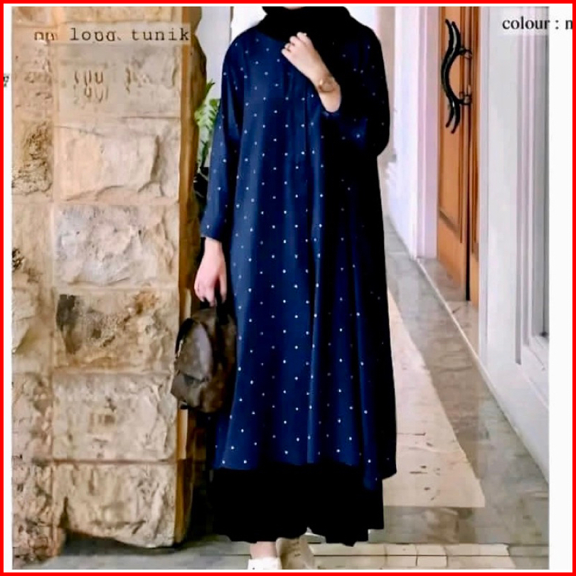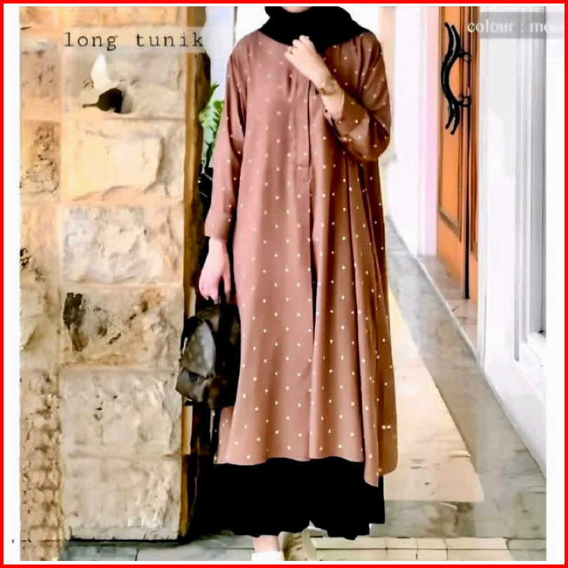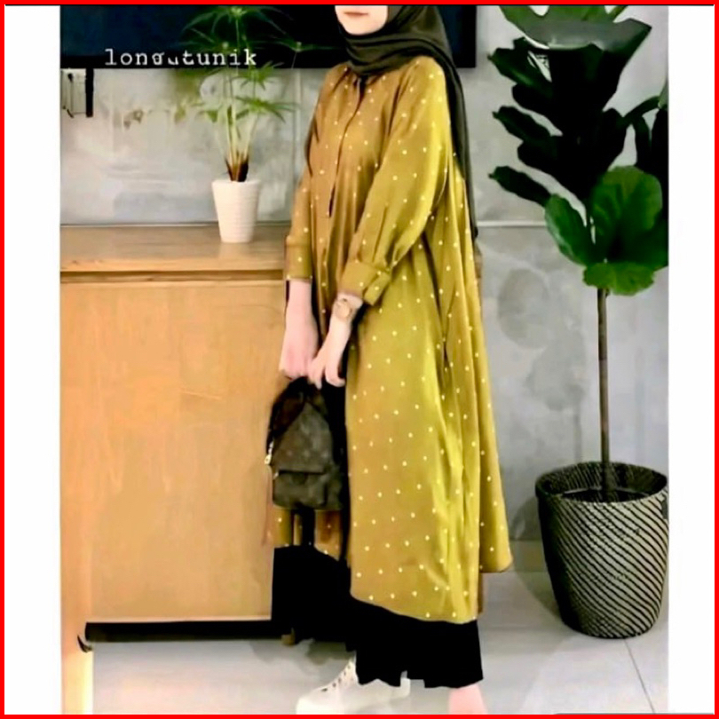 Long Tunik Polkadot Bahan Katun Rayon Lembut Tebal Dan Halus.