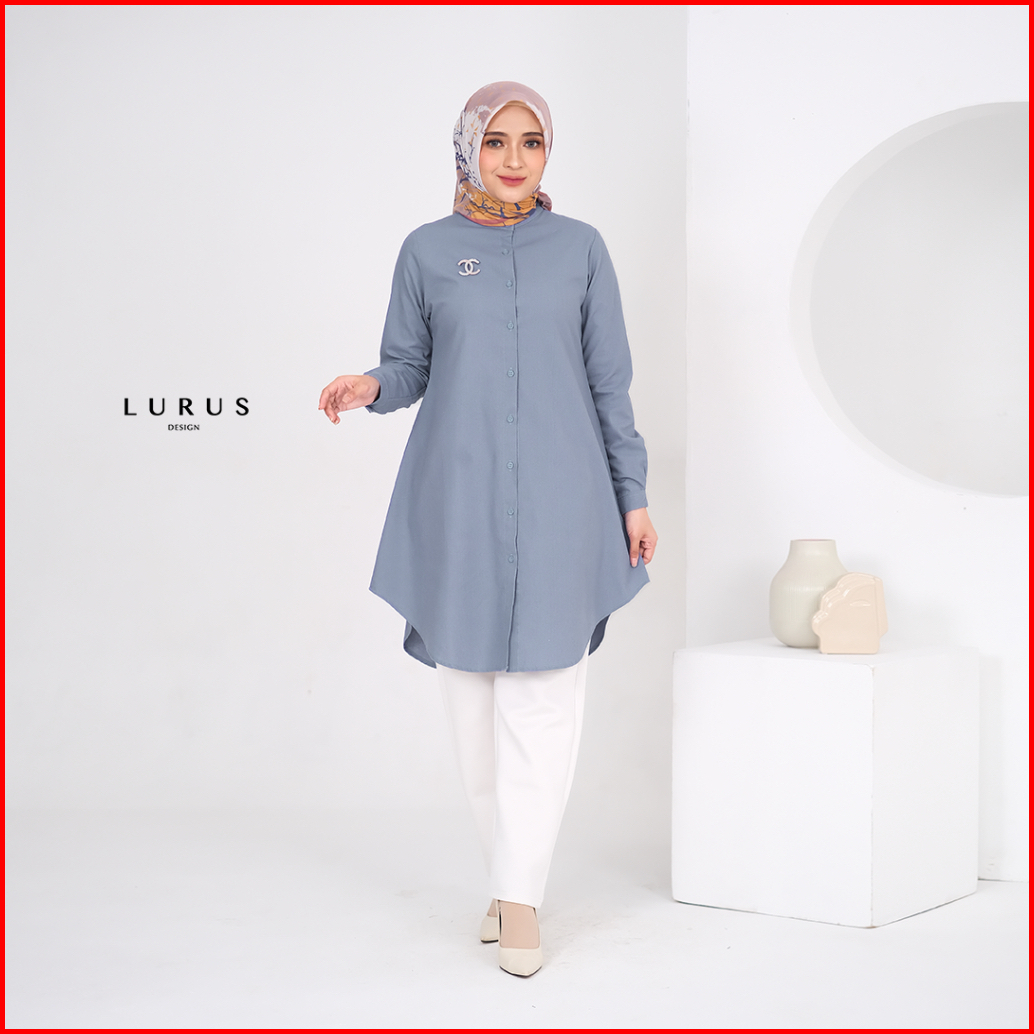 Lurus Tunik Linen Polos Import Wanita Terbaru