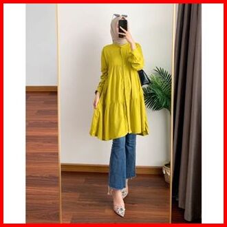 Arfa Style Mailo Tunik - Baju Wanita Motif Polos Bahan Katun Rayon Adem Ld 110 - Murah