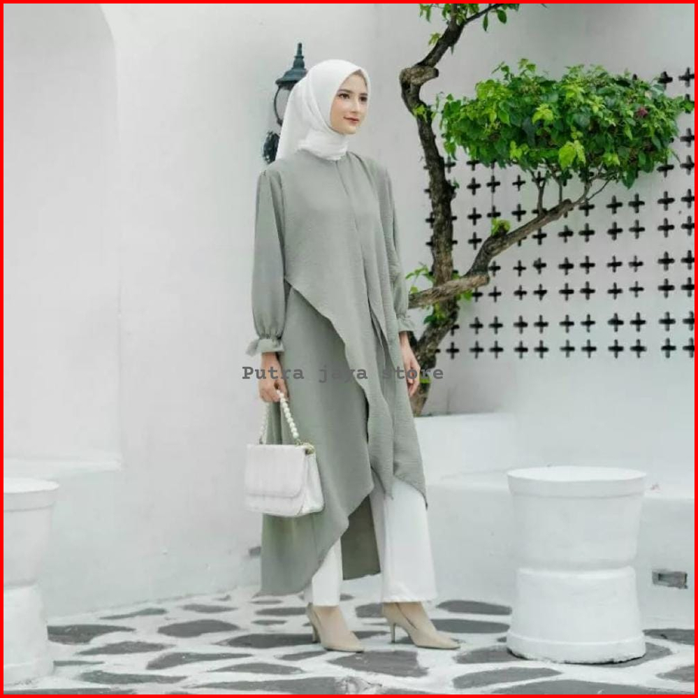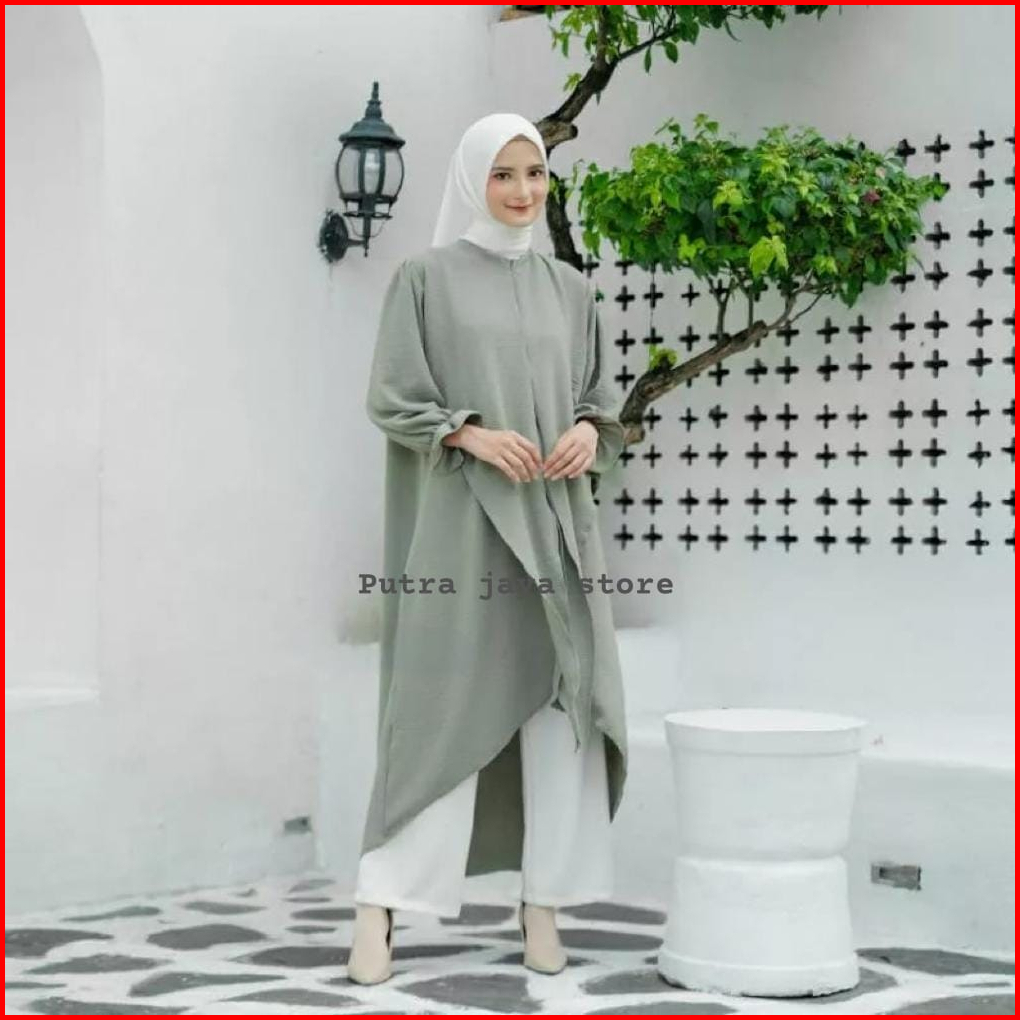Long Tunik Elena Crinkle Airflow Premium Dress Tunik Kondangan Terbaru Gamis Midi Dress Viral Kekinian
