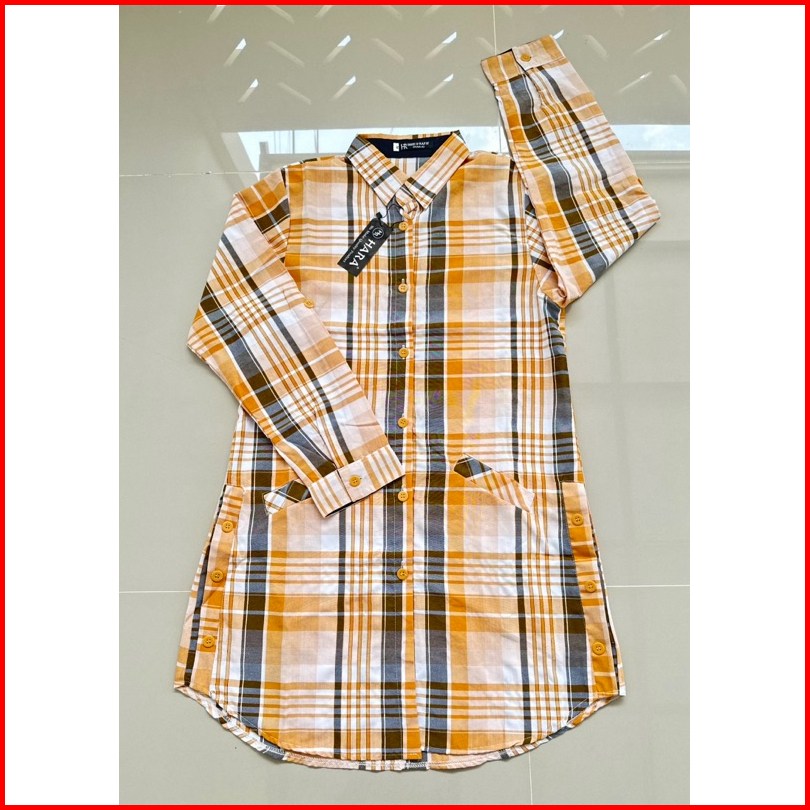 Tunik Hara Motif Salur Saku Bawah Katun Tebal