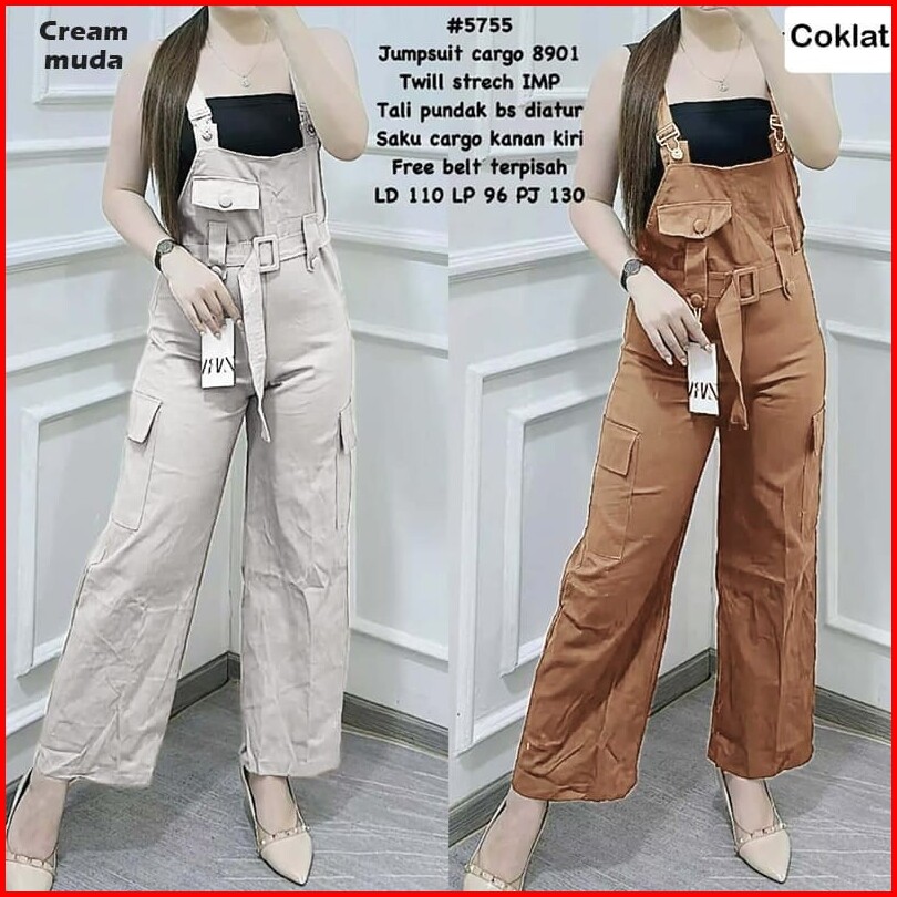 Dona Jumpsuit Celana Cargo Imp Bahan Twill Combed Strecth