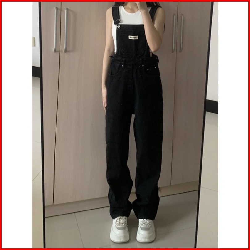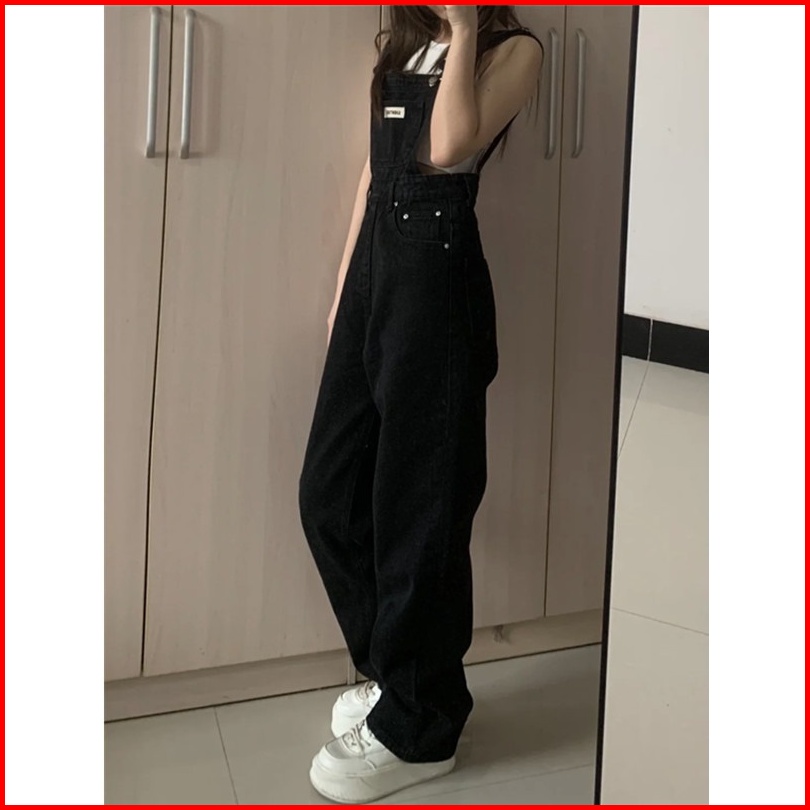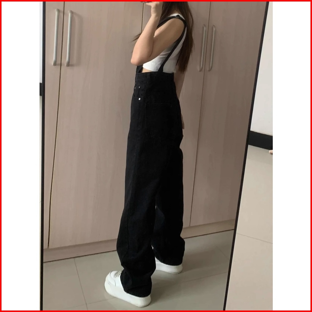 Overall Celana Jeans Pinggang Tinggi Wanita Celana Kaki Lebar Lurus Longgar Gaya Korea Jumpsuits