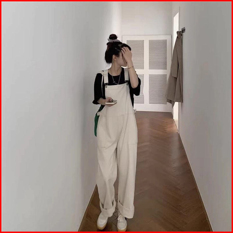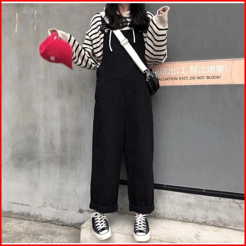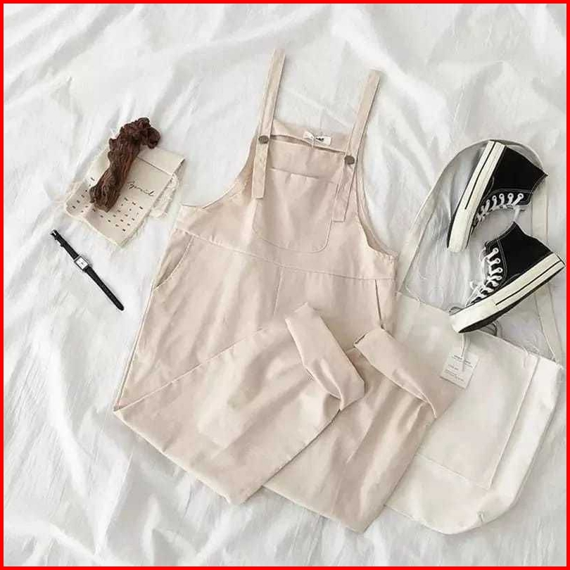 Flow Overall Jumsuit Wanita Katun Drill Korean Style Kekinian