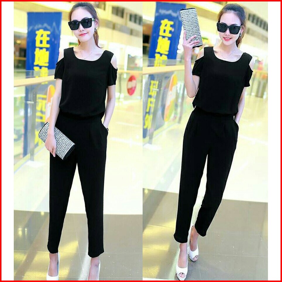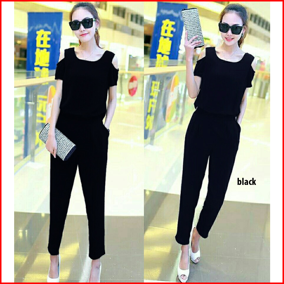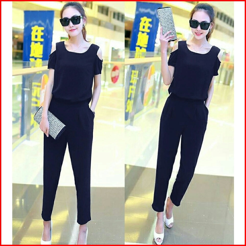 Rf - Jumpsuit Elizah Ada Warna Hitam Dan Navy Pinggang Ada Karet Belakang Ada Sleting Bahan Twiscone Uk L-xl Ld 98-100cm