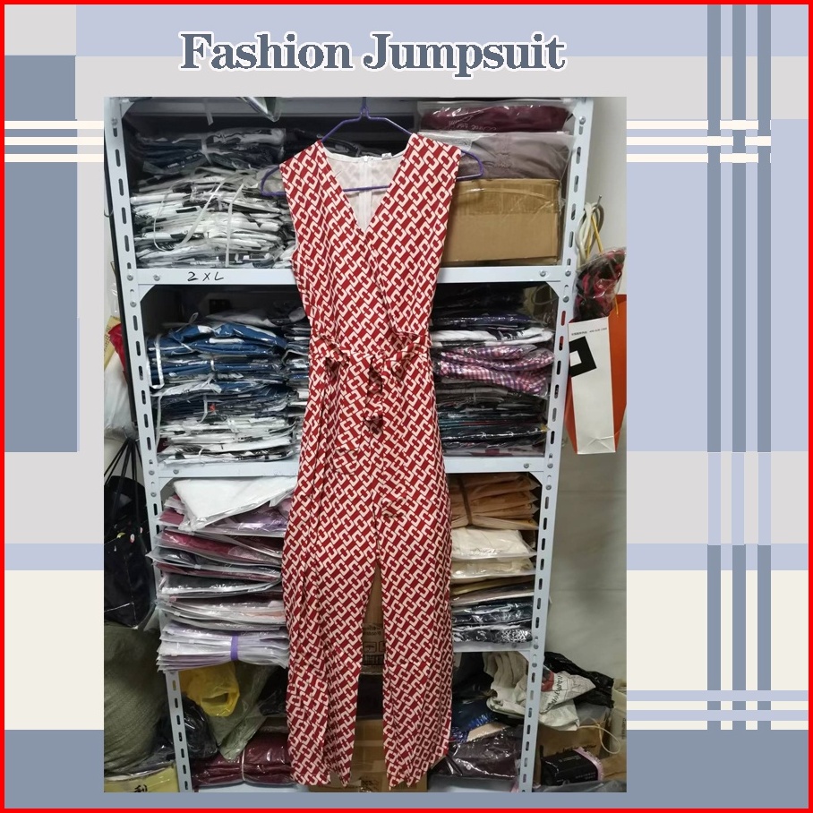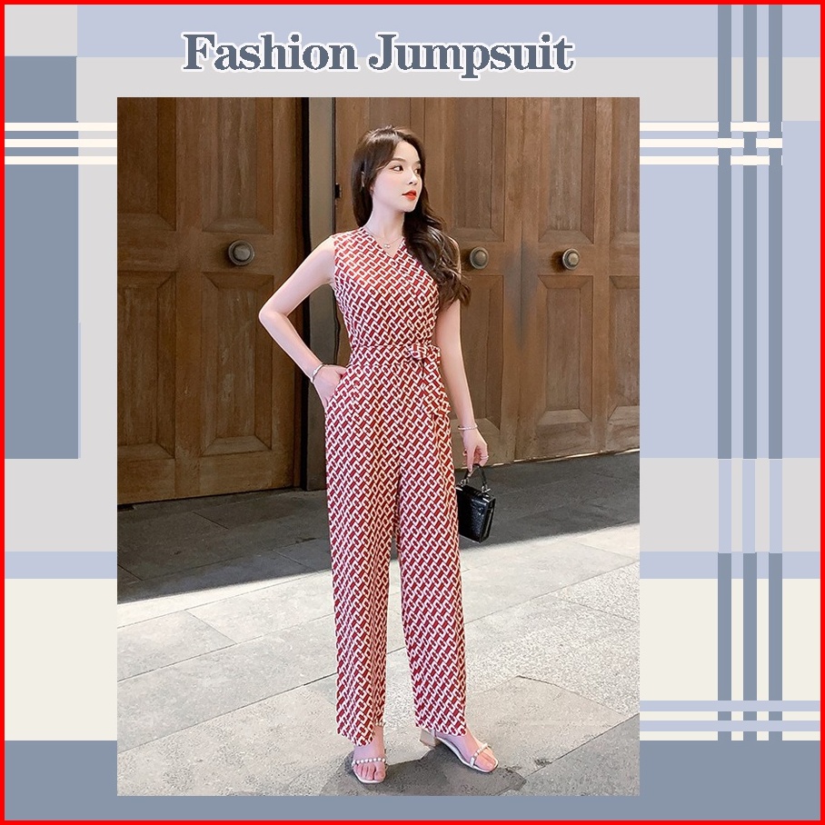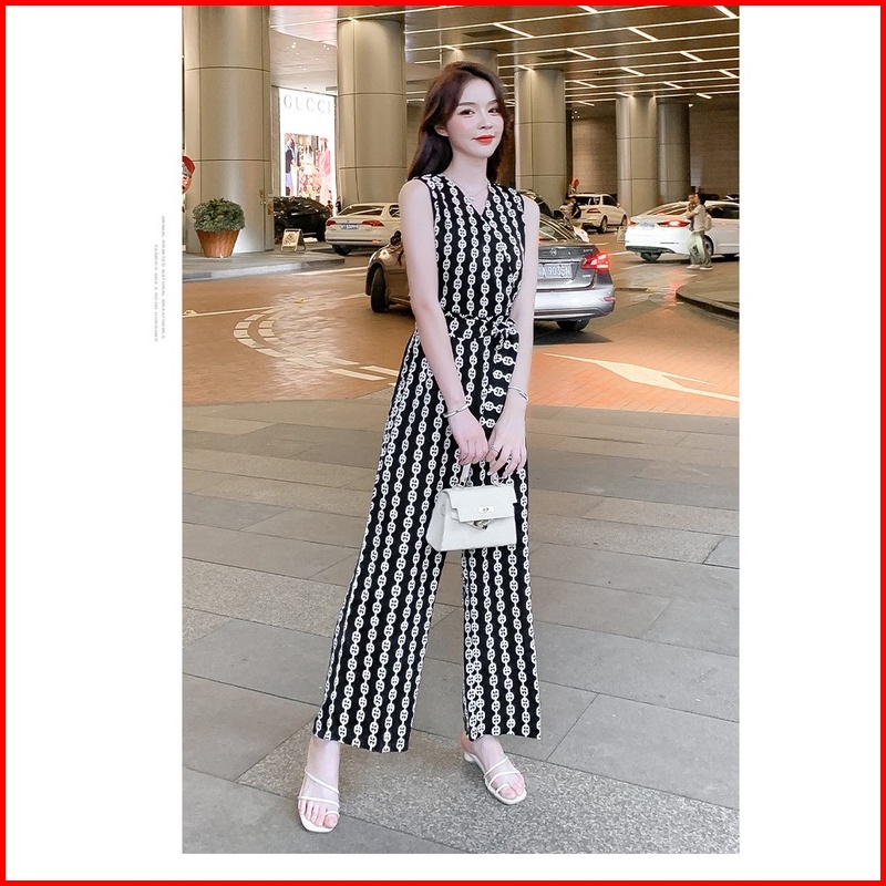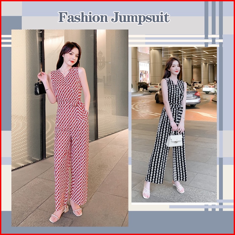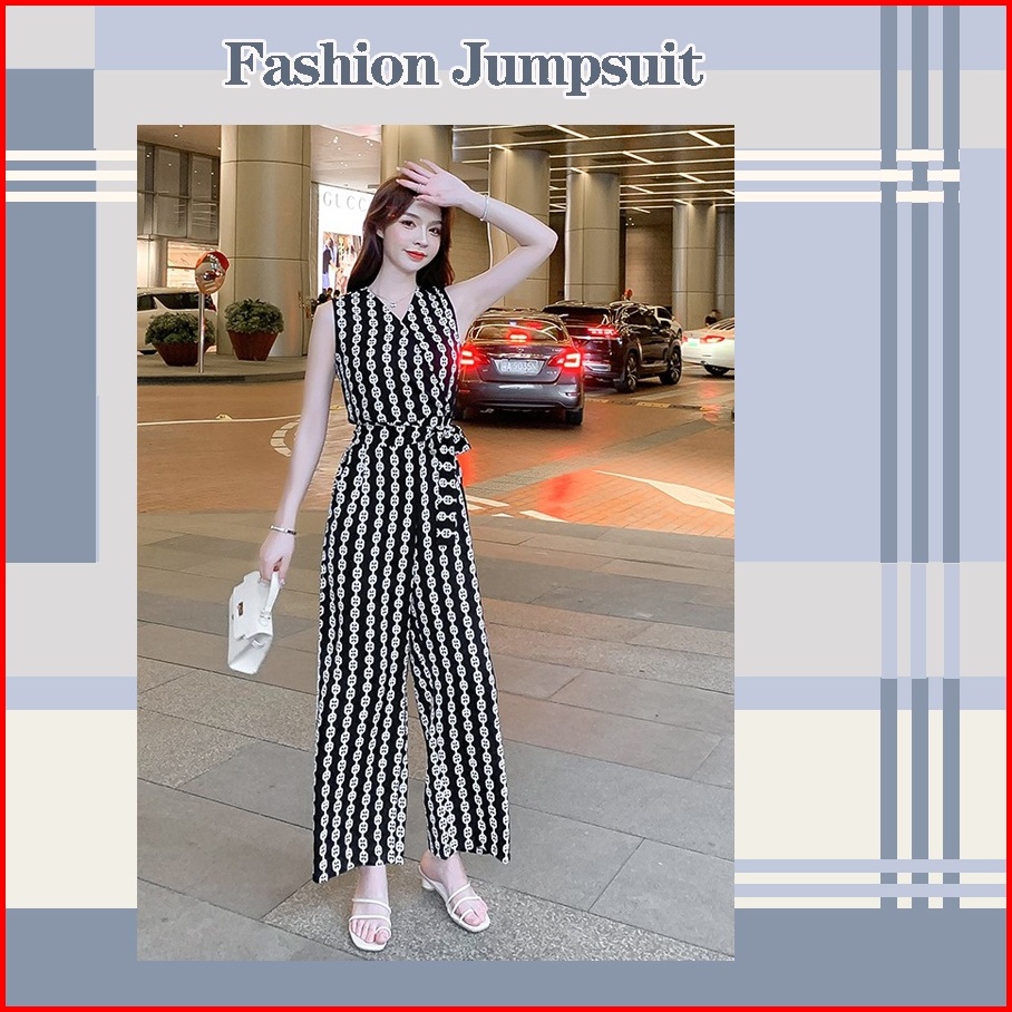 Jumpsuit Tanpa Lengan Ritsleting Belakang Celana Kaki Lebar Mode Gaya Korea Cocok Untuk Berat Hingga 60kg V-neck