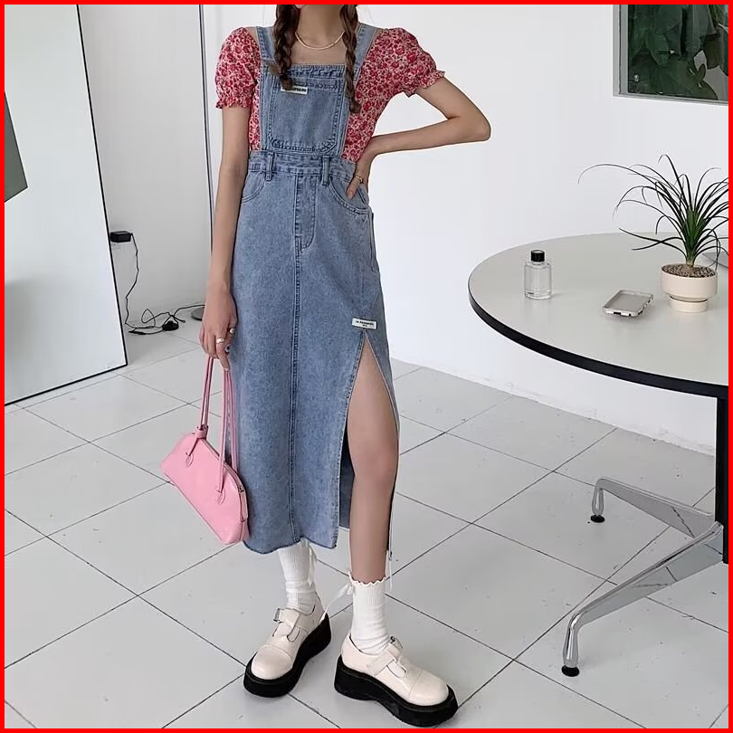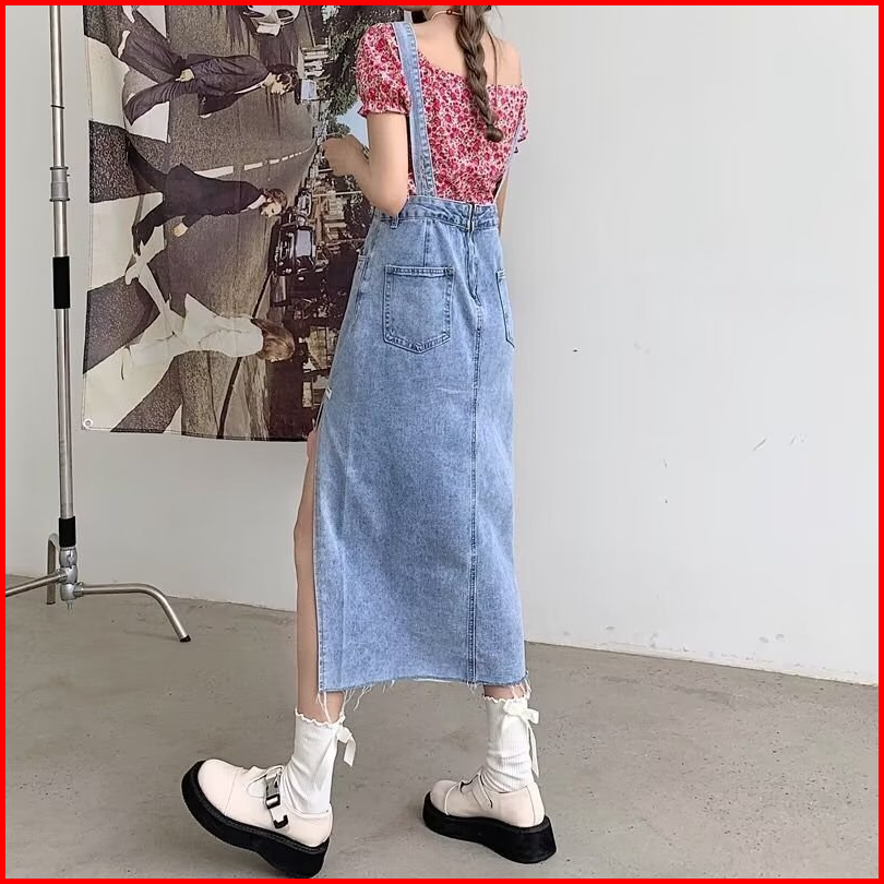 Jumpsuit Wanita Overall Skirt Denim Rok Kodok Belahan Samping-jp008