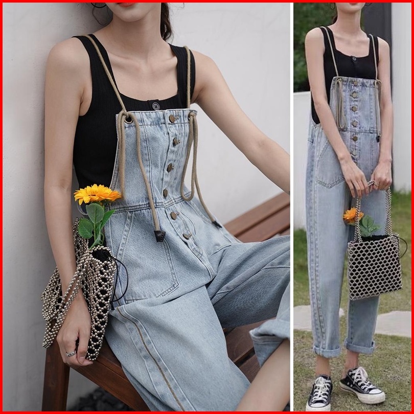 Celana Tali Denim Celana Jeans Longgar Murid Sembilan Celana Sembilan Titik Surut