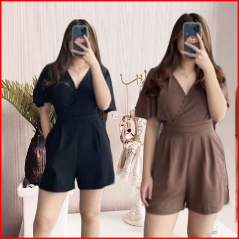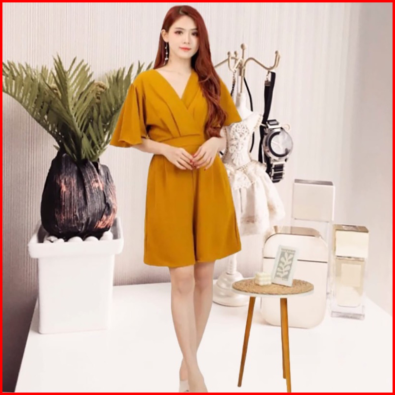 Jumpsuit Wanita Pendek Premium Crinkle Adem