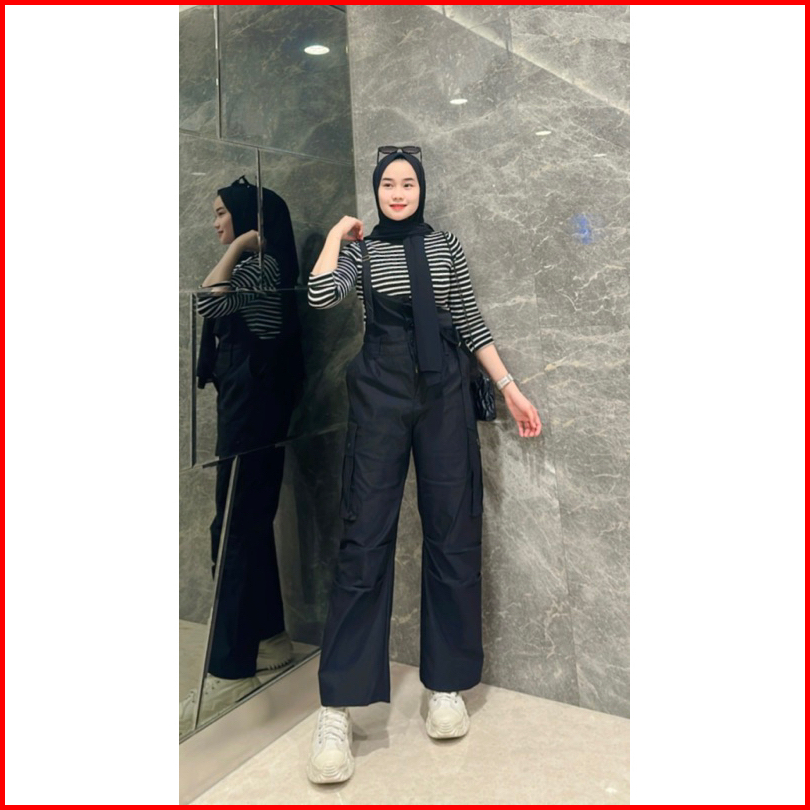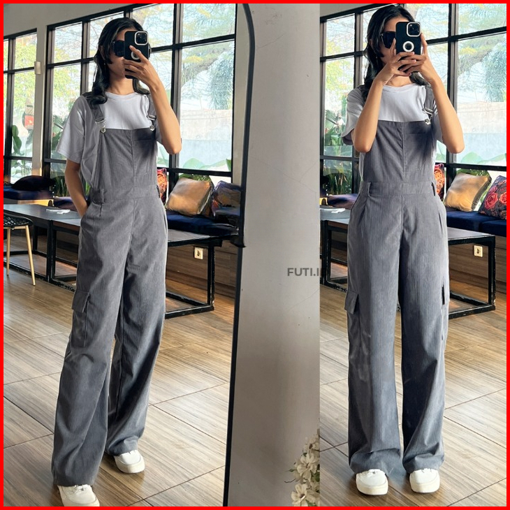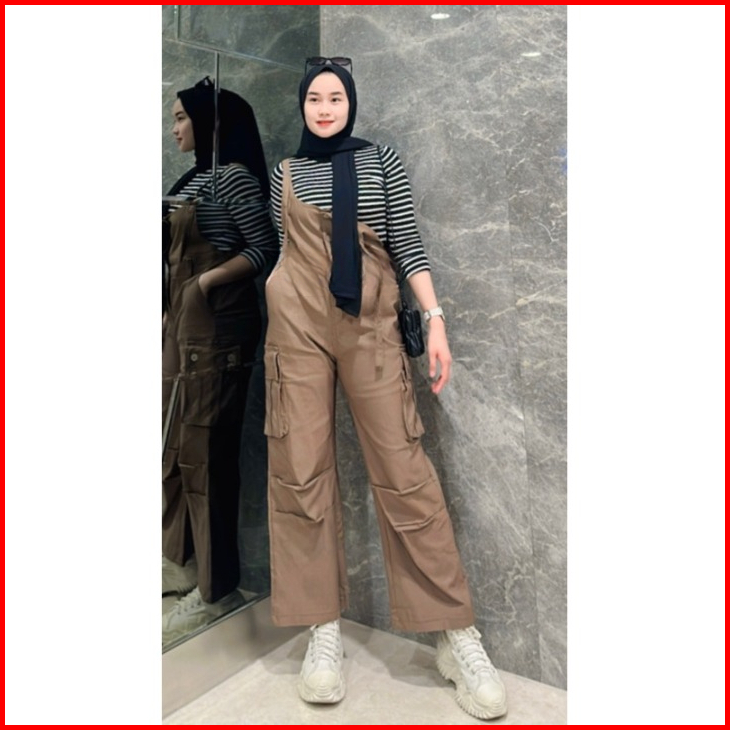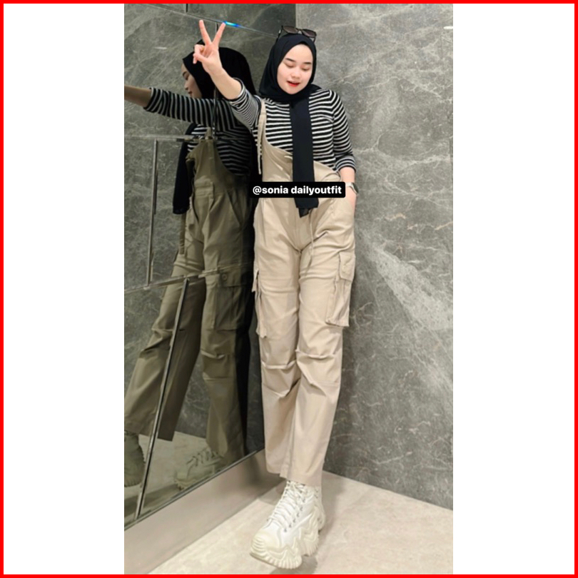 Overall Celana Cargo Jumpsuit Wanita Bahan Katun Tebal Korean Style Kekinian Terbaru Baju Kodok
