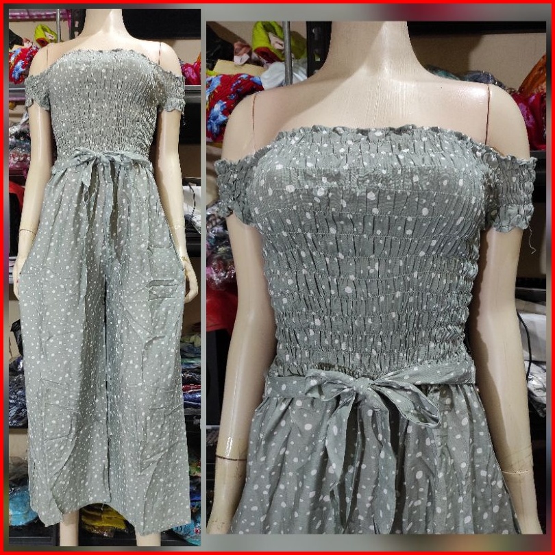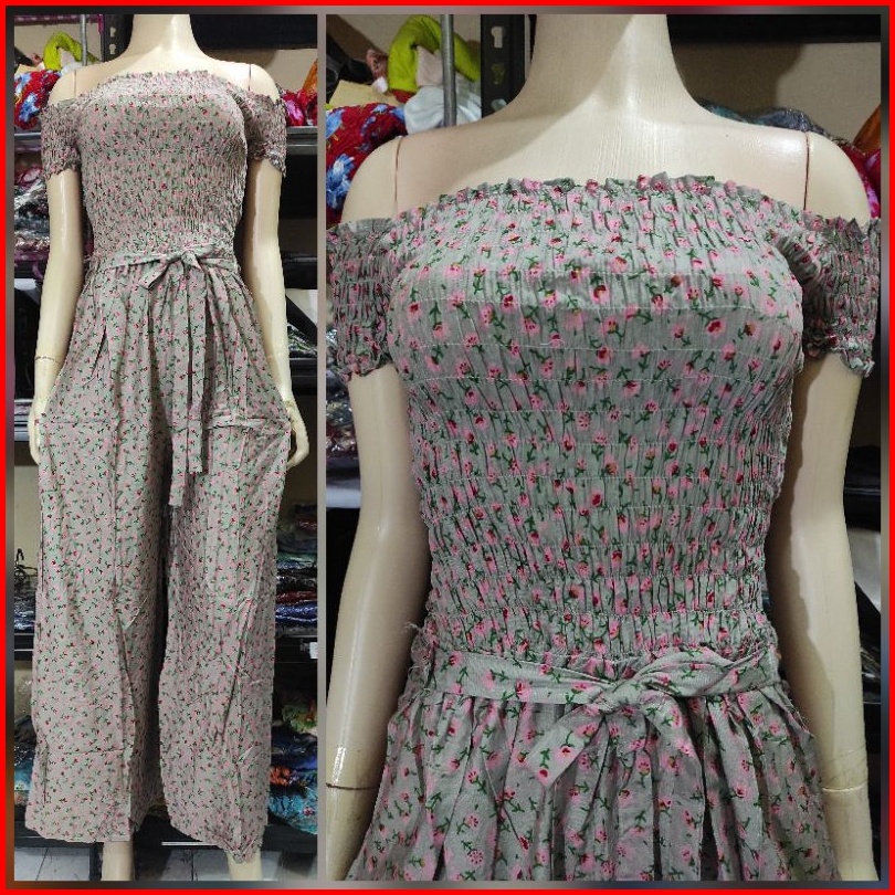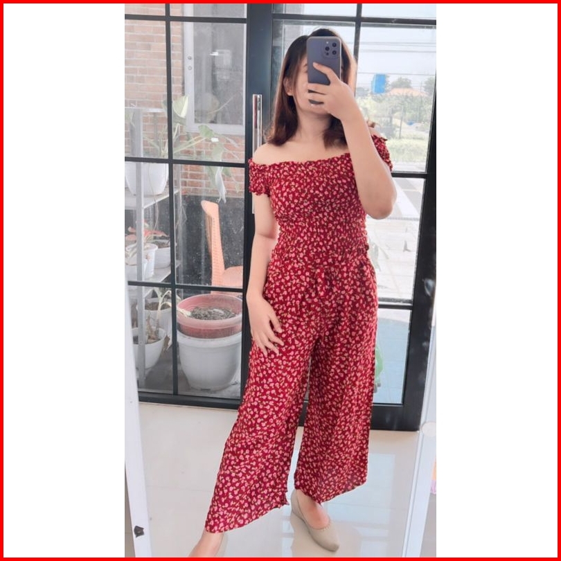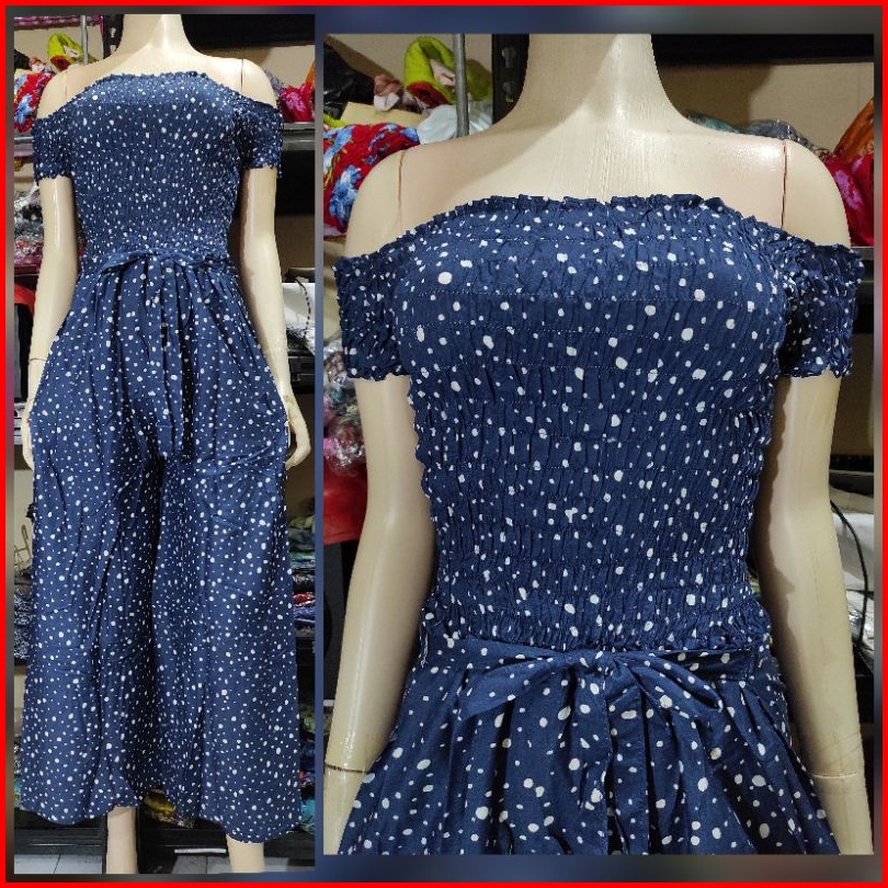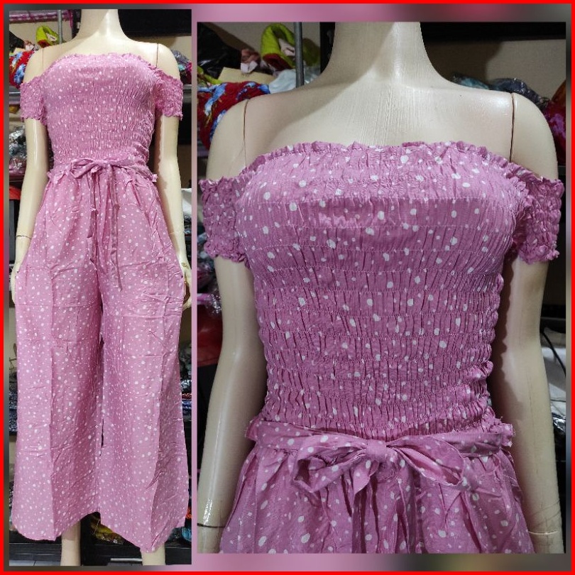 Jumpsuit Bali Kerut Lengan Celana Panjang Katun Rayon