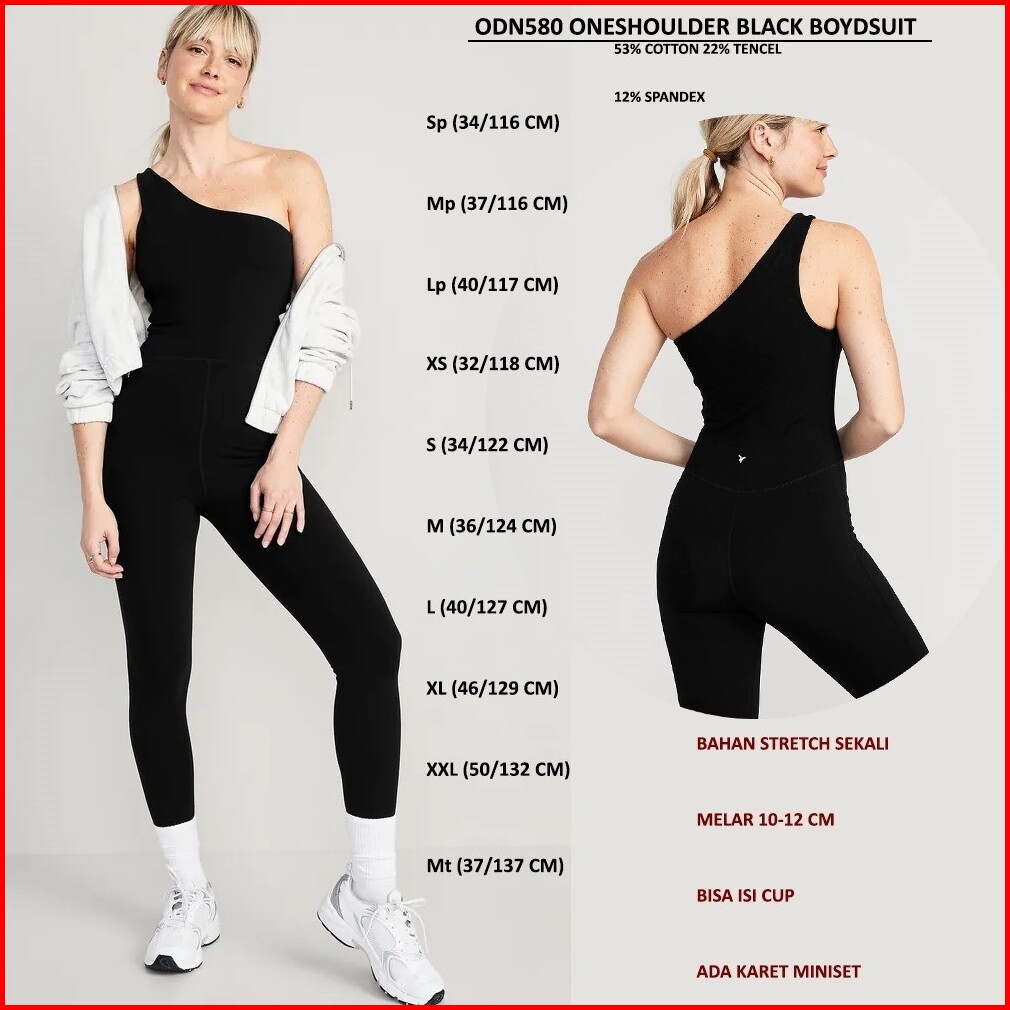 Jumpsuit Wanita Oneshoulder Stretch Odn580 Oneshoulder Black Bodysuit