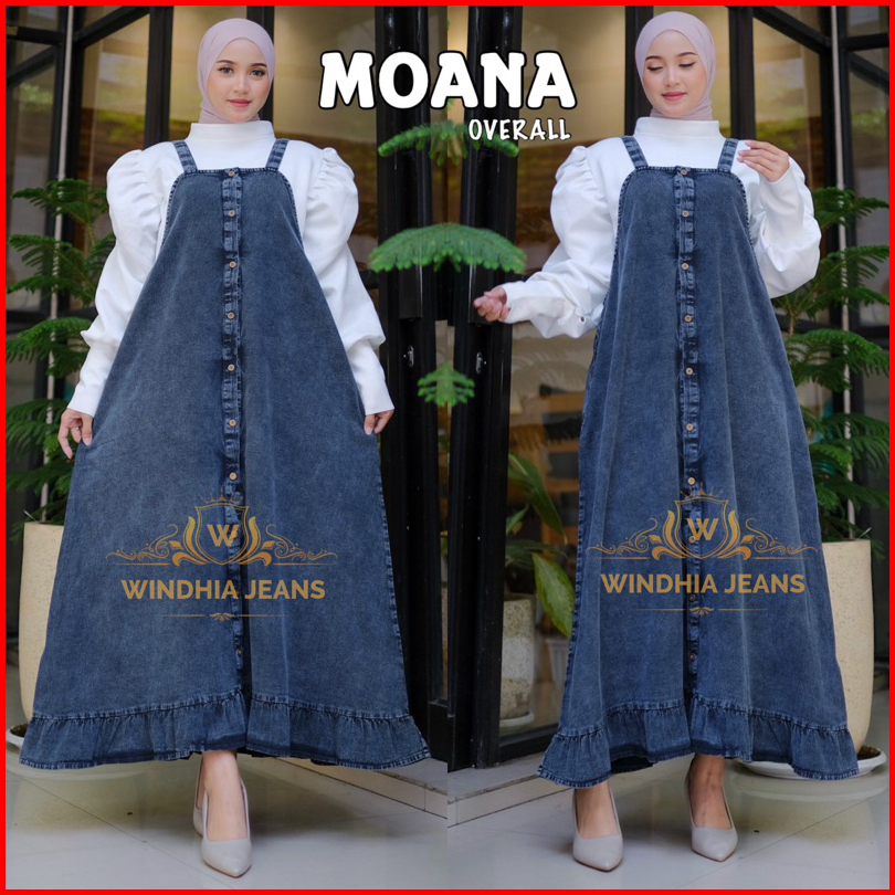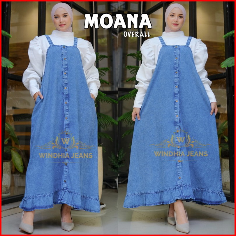 Moana Overall Overal Jeans Jean Wanita Korea Jumbo Big Size