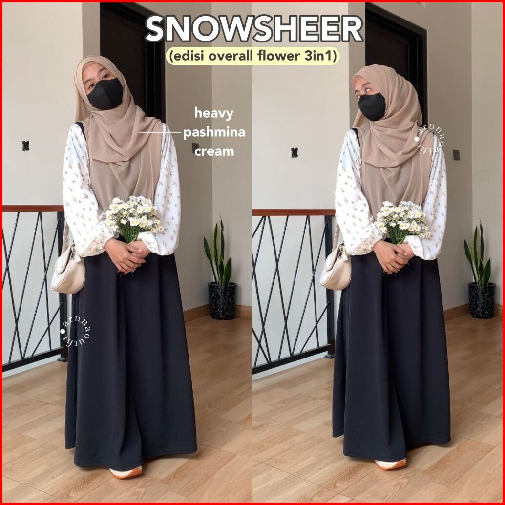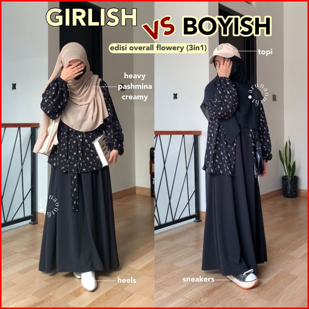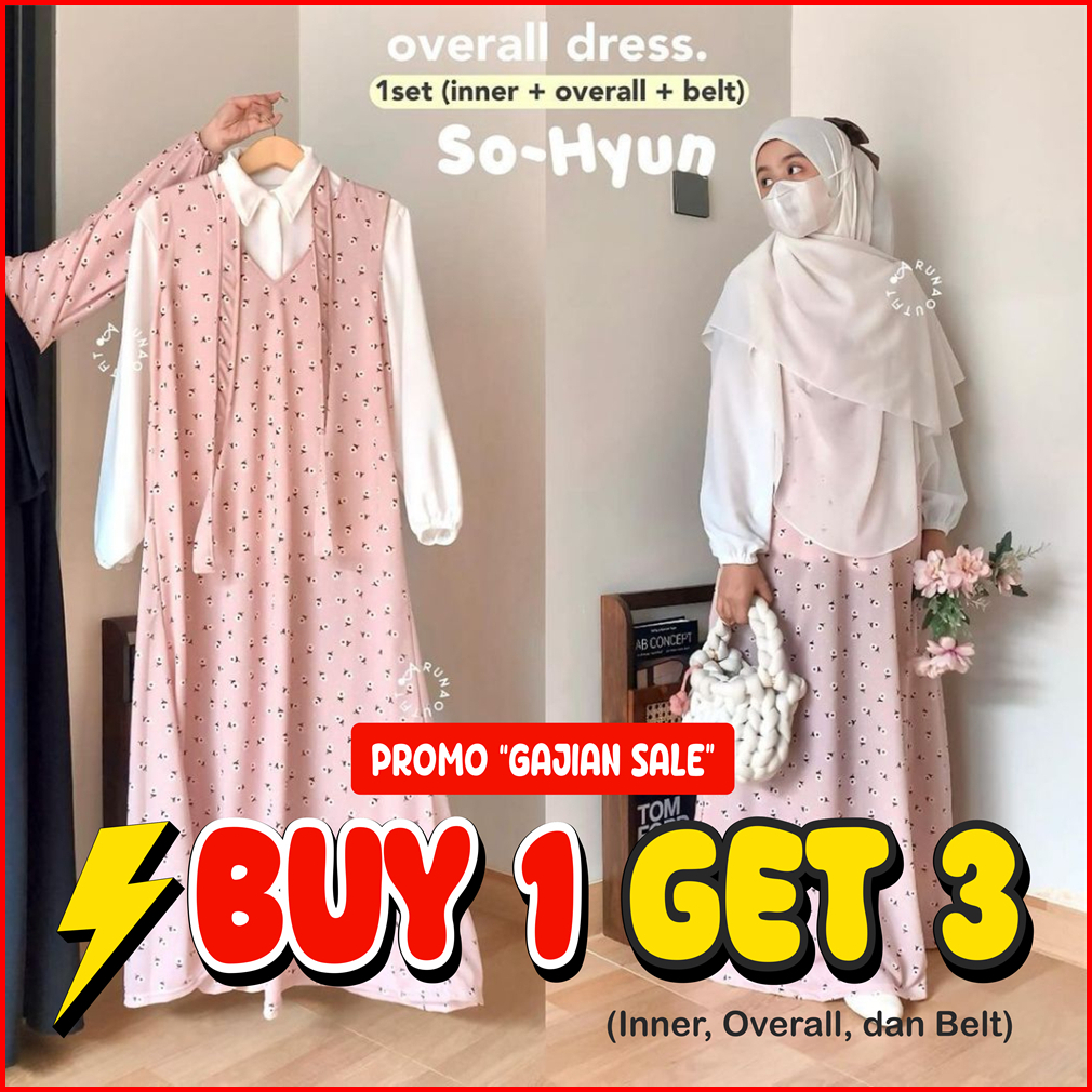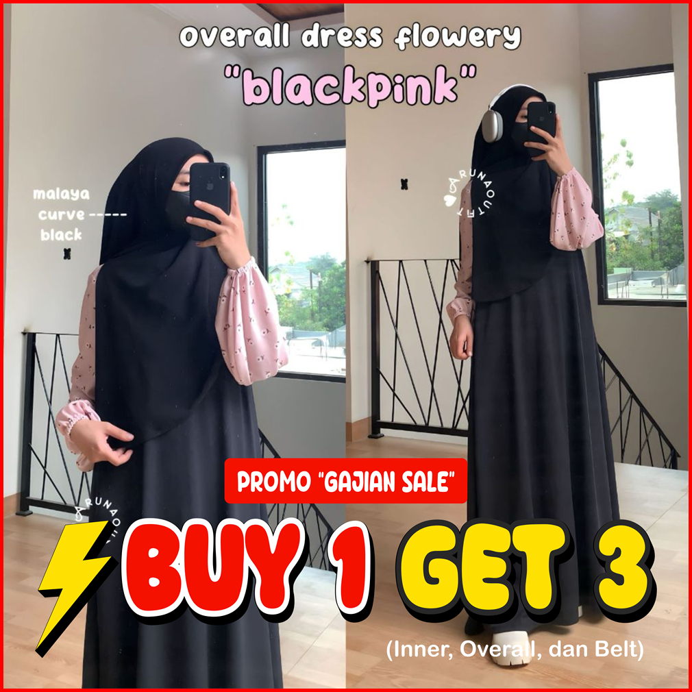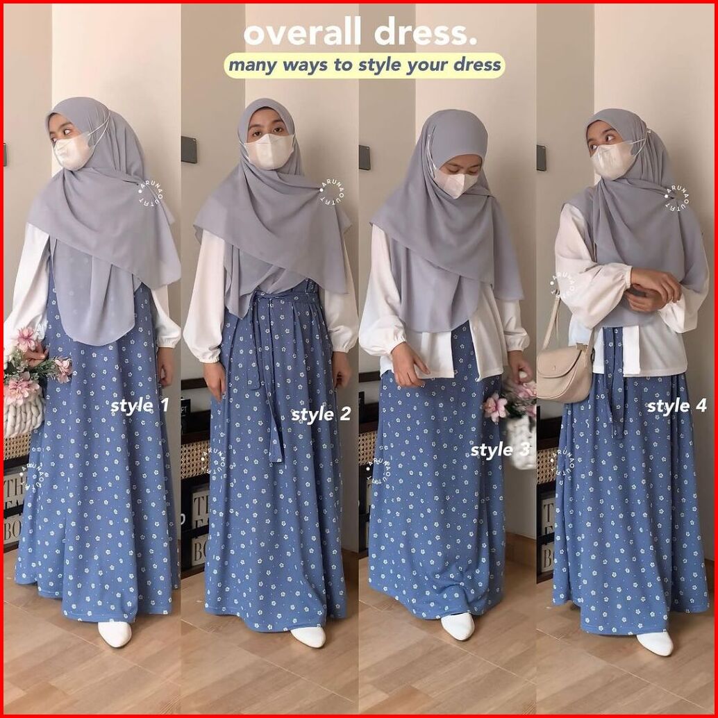 Arunaoutfit - Korean Overall Flower 1set Inner Kemeja Overall Dress Belt Oneset Dress Remaja Murah