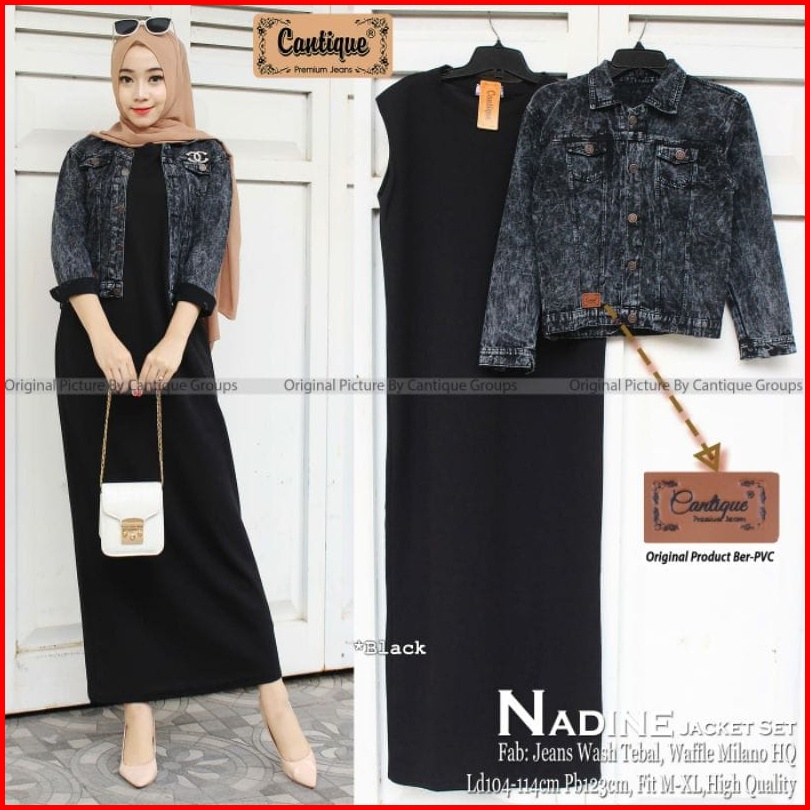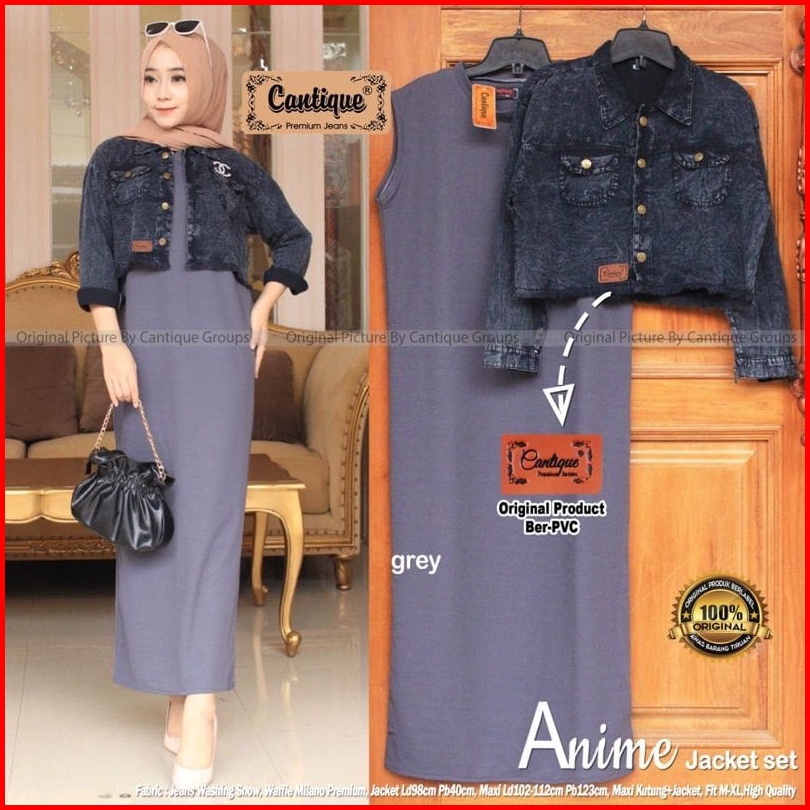 Setelan Jaket Jeans Crop Dan Dres Inner One Set Dress Outer Jeans Crop