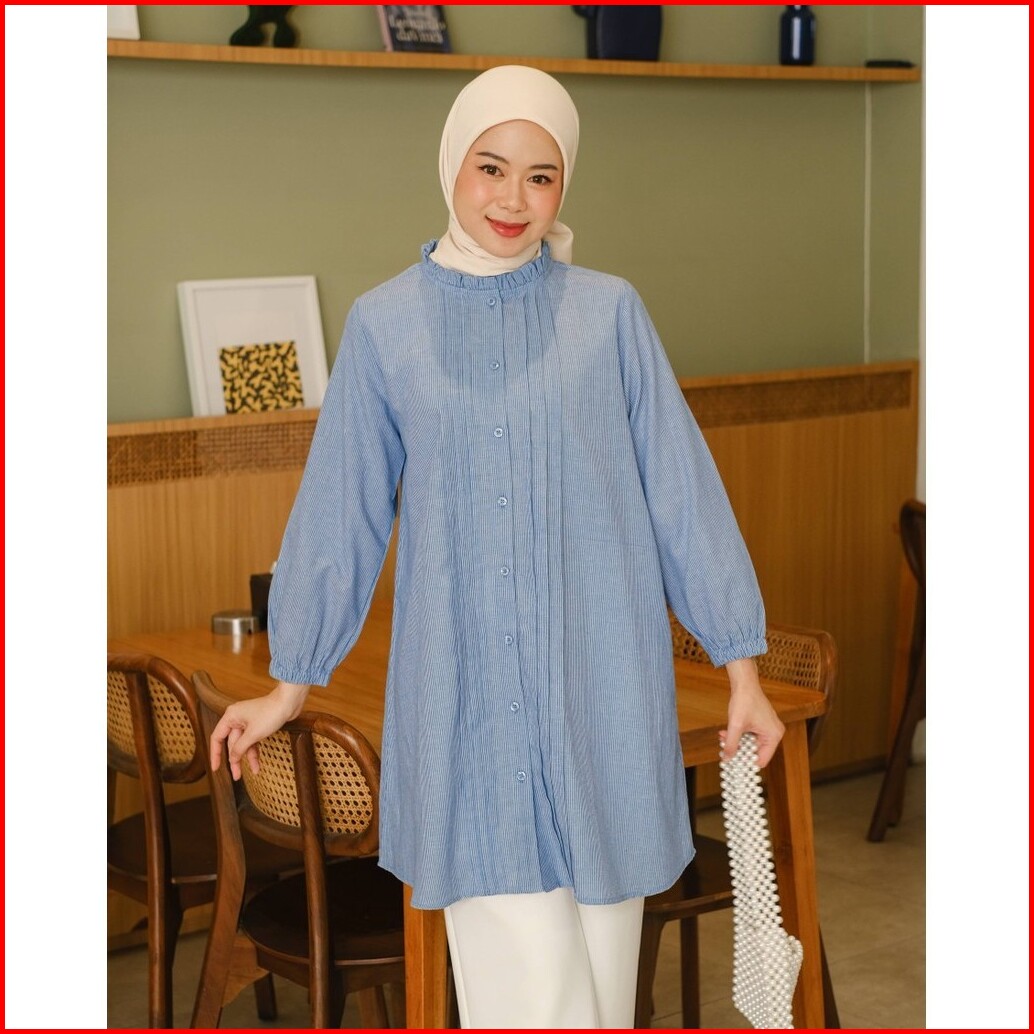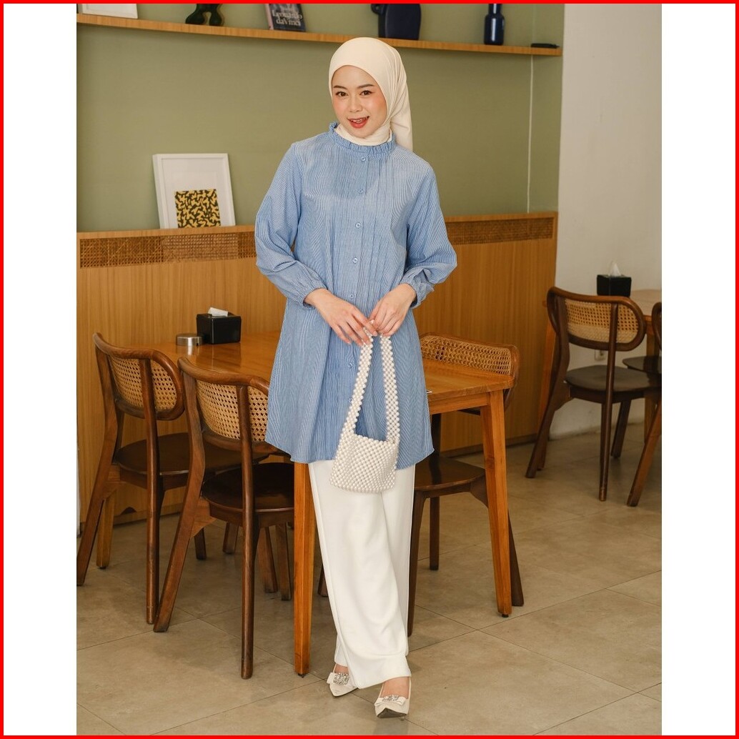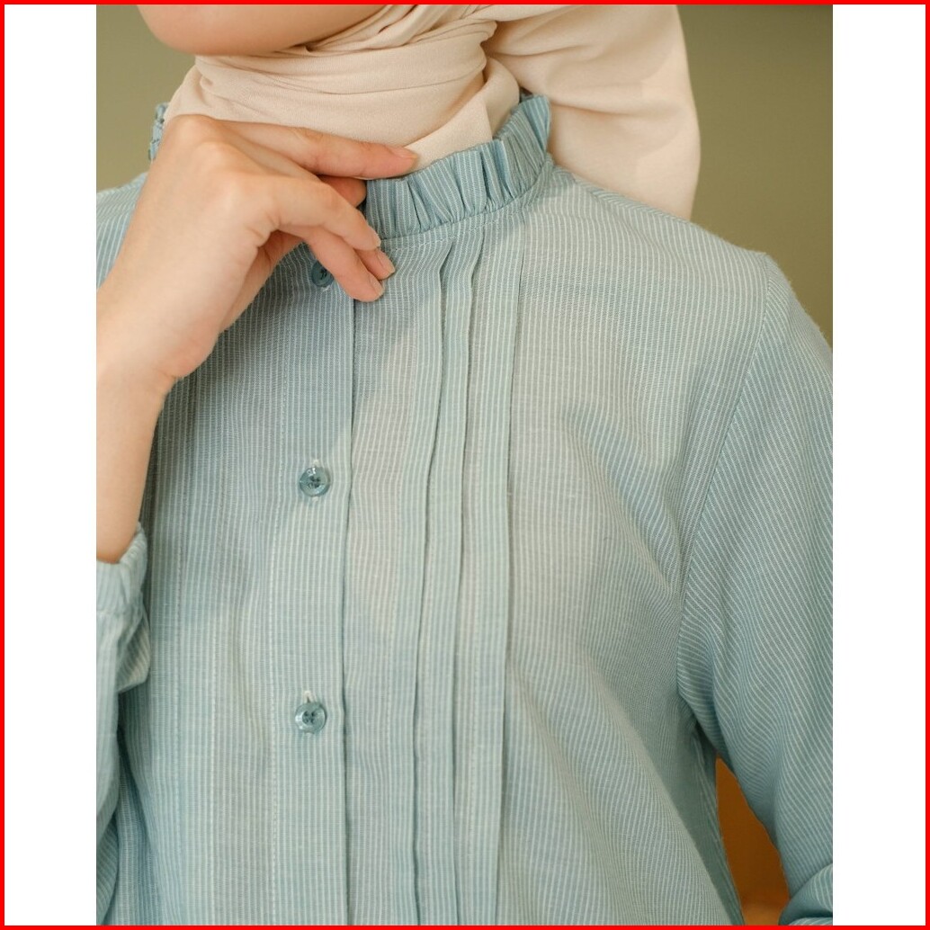Mayoutfit Zucca Tunic Tunik Basic Katun Stripe Kerah Frill Embroidery