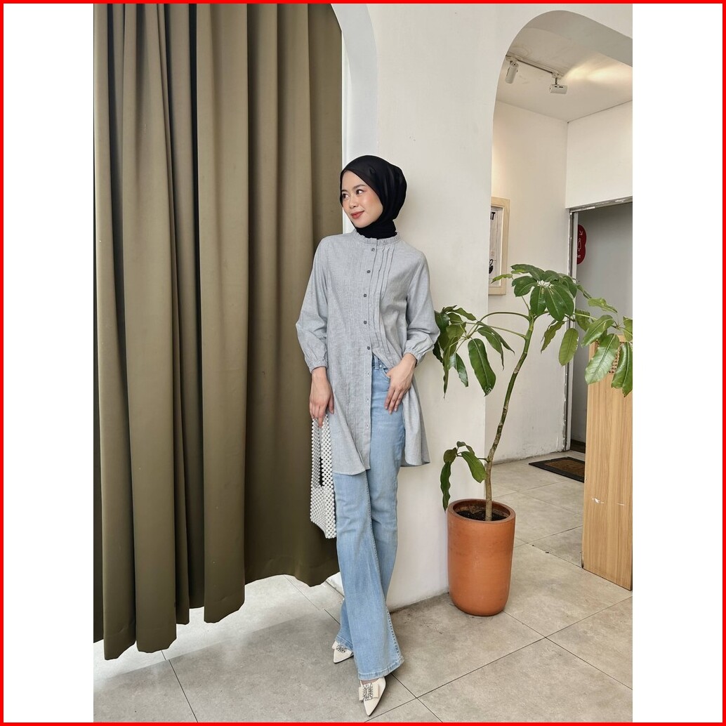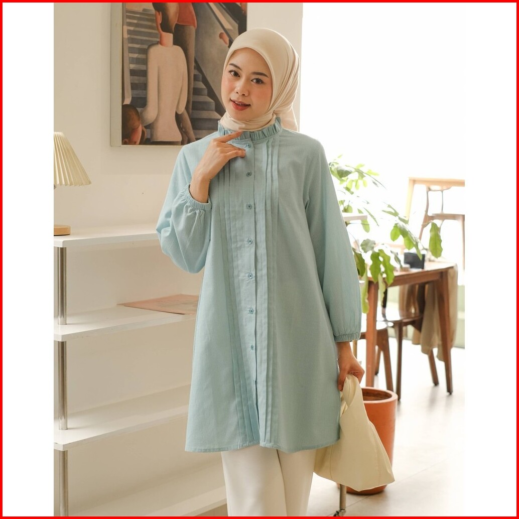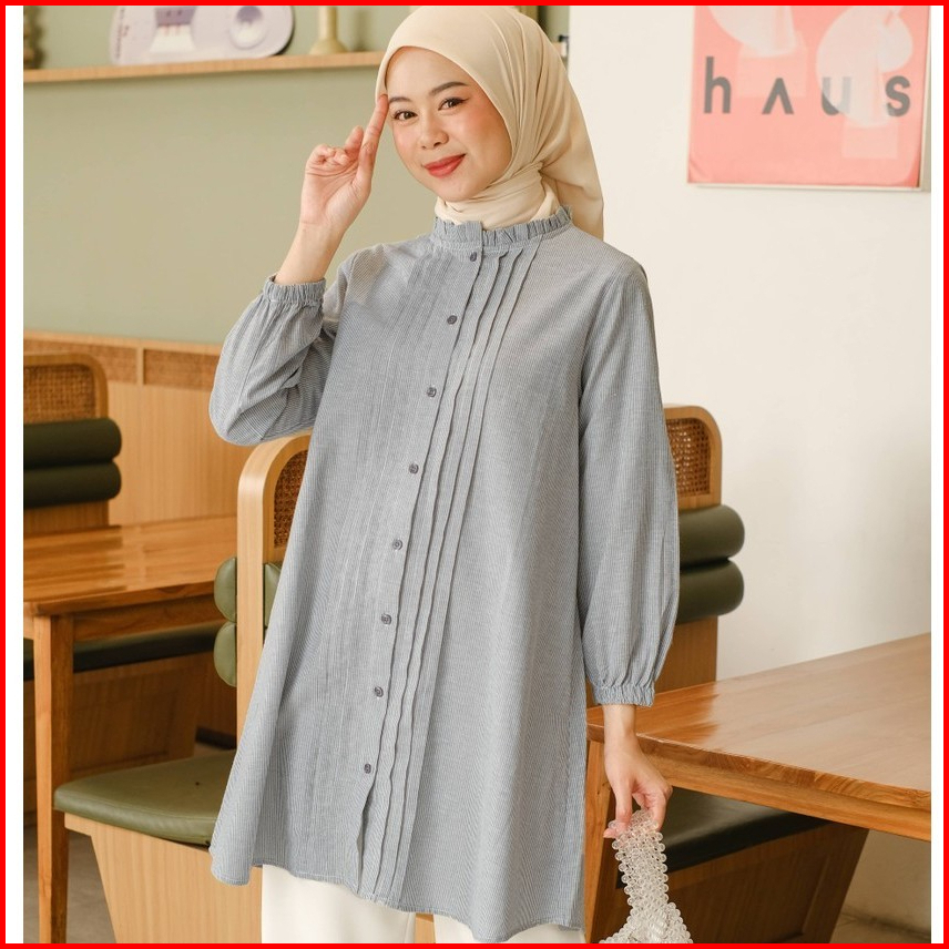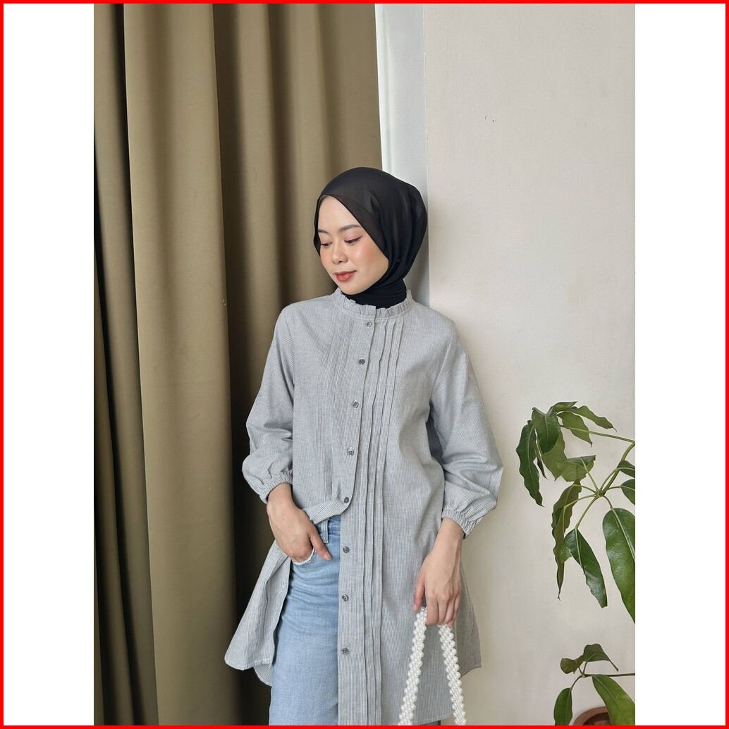 Mayoutfit Zucca Tunic Tunik Basic Katun Stripe Kerah Frill Embroidery
