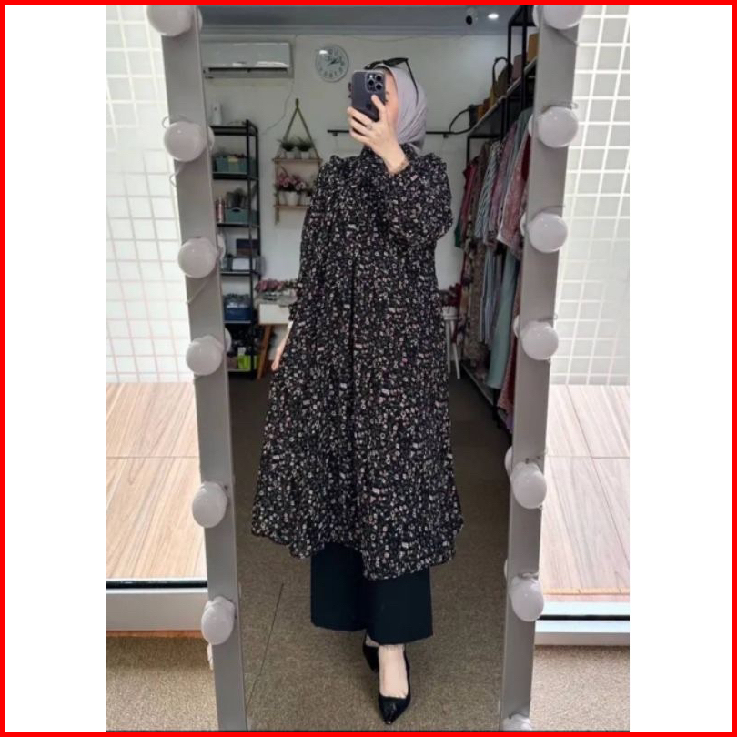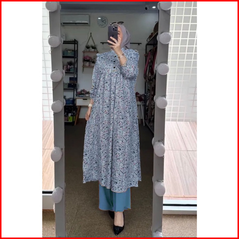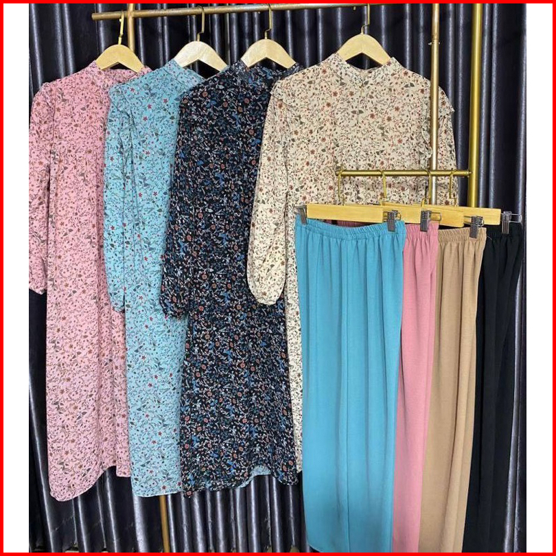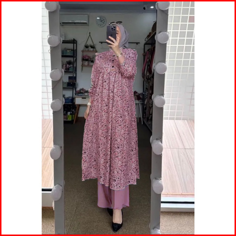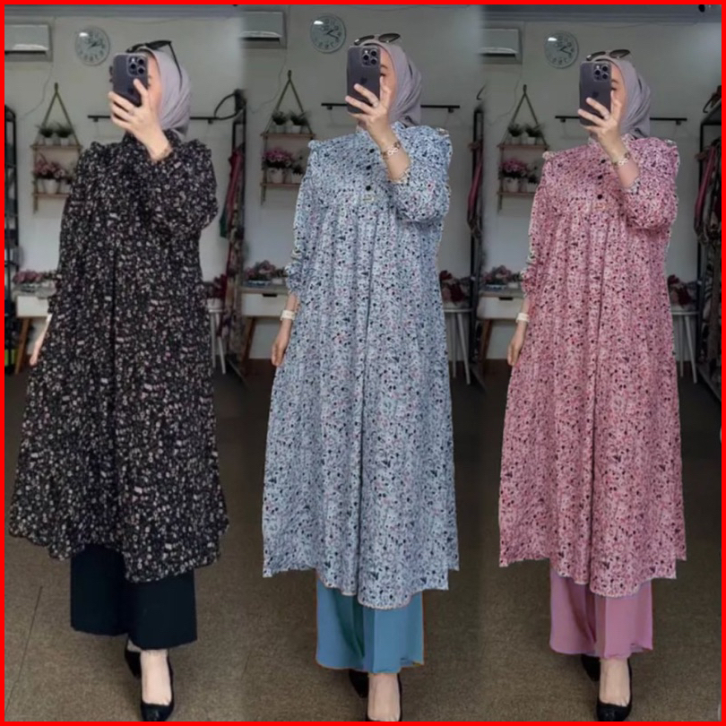 Daun Amalia Oneset Long Tunik Setelan Tunik Rayon Premium - Oneset Long Tunik Cerutty Kulot Crincle Premiumi
