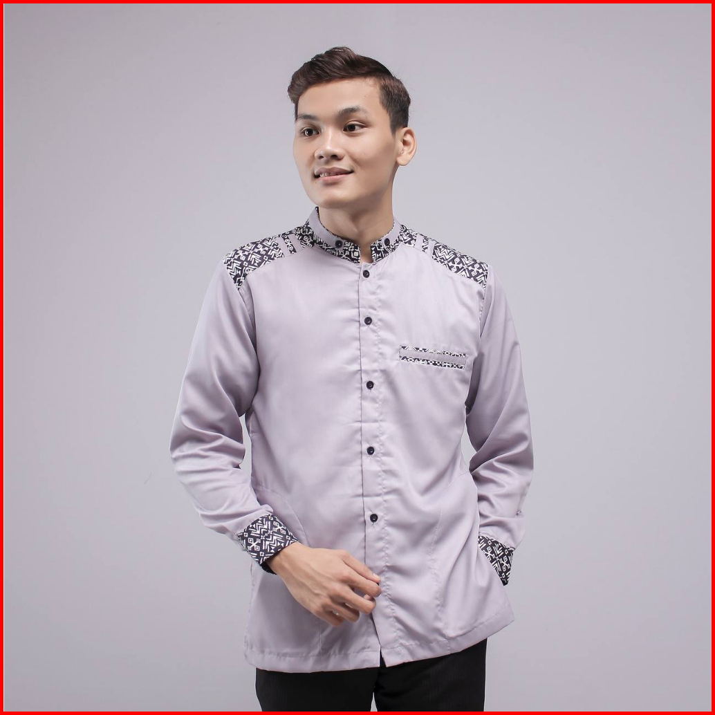 Baju Koko Kombinasi Batik Motif Catur Lengan Panjang Warna Navy Casual Slimfit