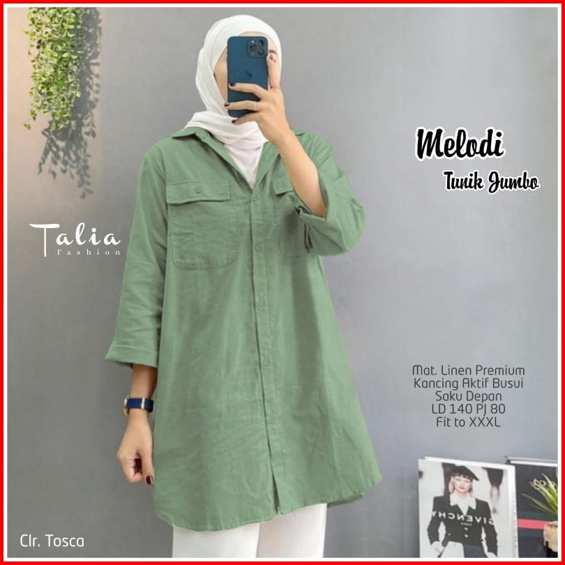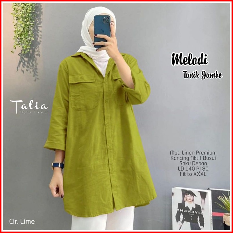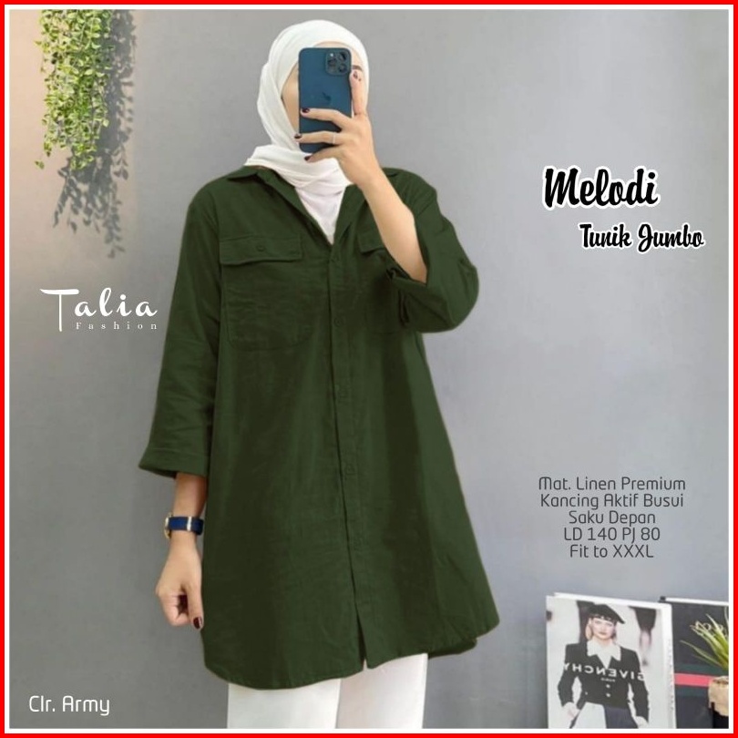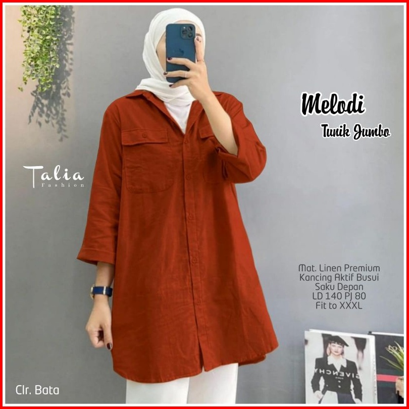 Melodi Tunik Jumbo Linen Premium Ld 140cm Pb 80cm Busui Friendly Ada Saku