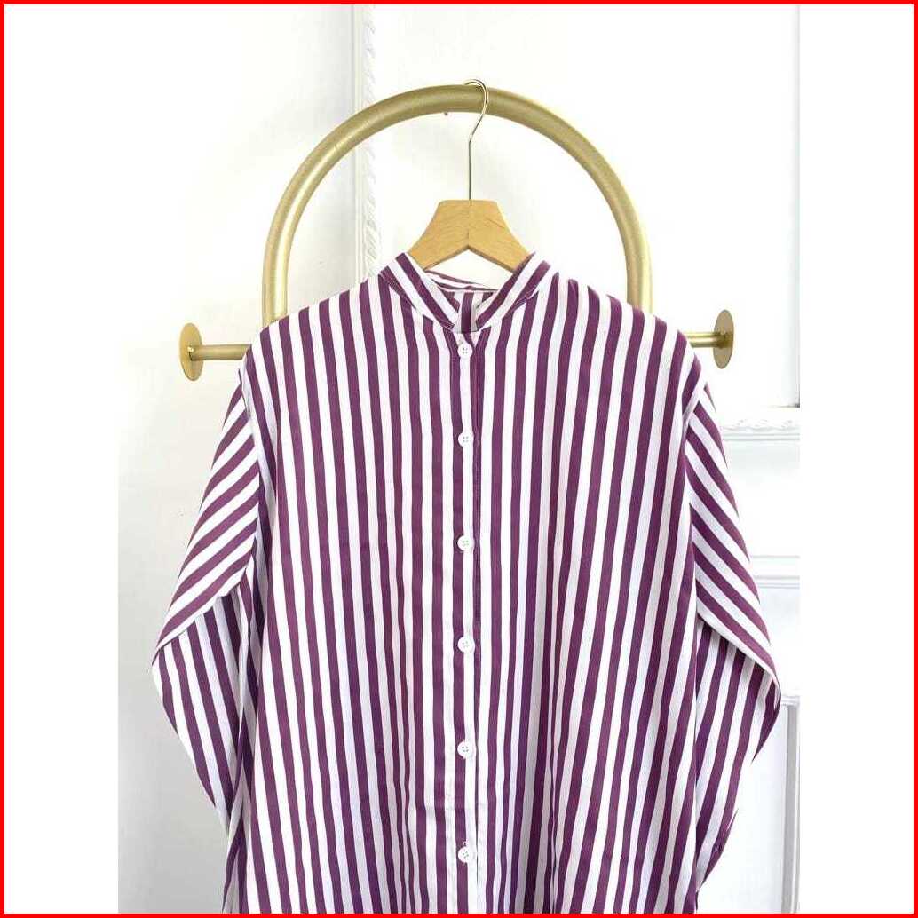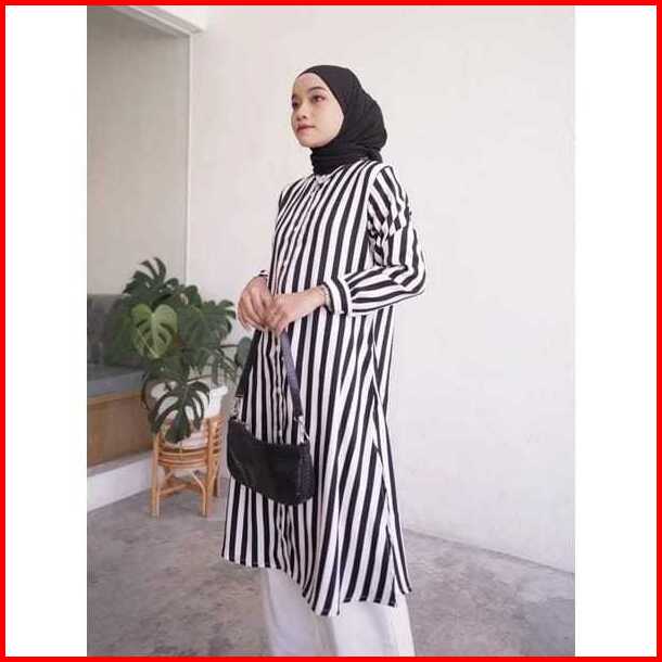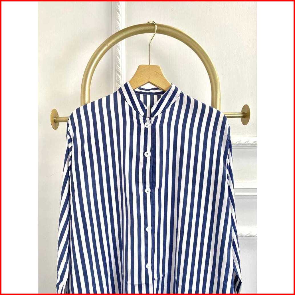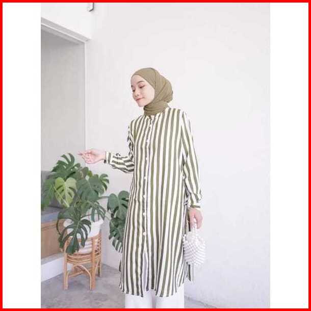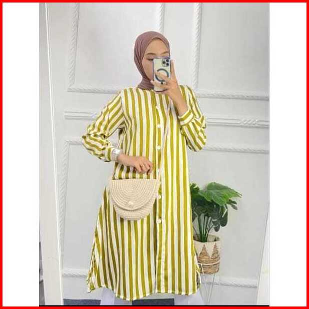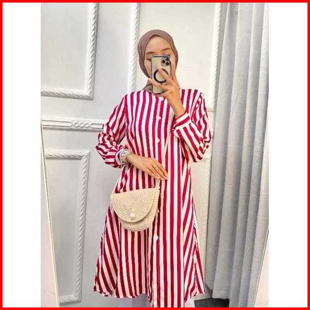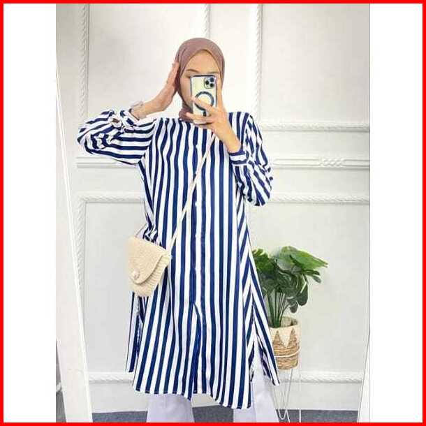 Long Tunik Salur Shakila Terbaru 2024 Import Jumbo Full Kancing Korea Style Elegan Murah Tapi Mewah